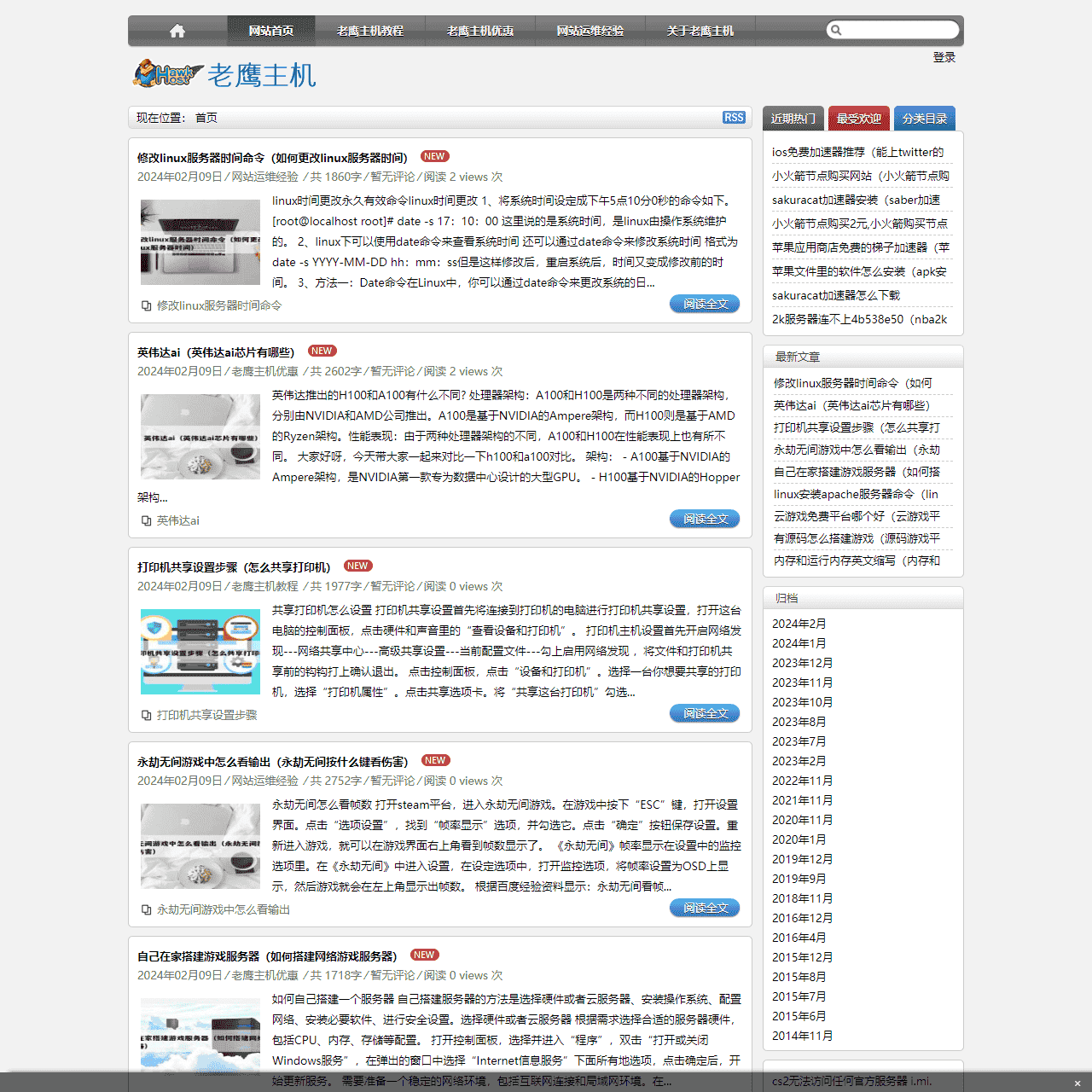 欢迎访问老鹰主机(LaoYingZhuJi.Com)!我们是您搭建网站和网络应用的理想选择。老鹰主机提供稳定可靠的主机服务,让您的网站腾飞于互联网世界之上。在这里,我们不仅提供优质的主机服务,还有丰富的教程和运维经验,助您在网络世界中游刃有余。
