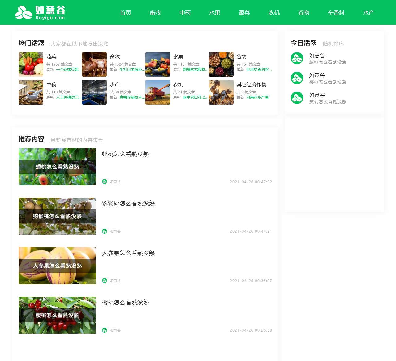 如意谷是一个专注于农业领域的网站,提供关于畜牧、中药、水果、蔬菜、农机、谷物、辛香料、水产等方面的信息。以下是我们网站的一些主要内容和最新文章列表: