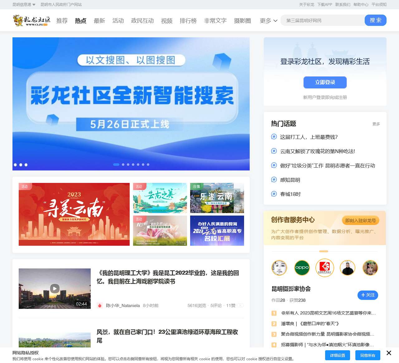 彩龙社区(www.clzg.cn),云南第一人气社区,提供昆滇生活资讯,城市信息,昆明吃喝玩乐,云南旅游,婚恋交友,消费购物,打折促销,昆明房产家装等信息服务,打造云南最成熟、网友活跃度最高的网上交流家园