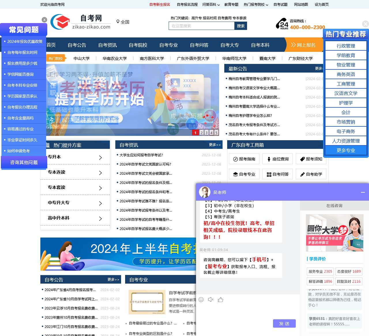 自考网提供自考大专,自考本科,自考专业和自考网上报名等报考服务,欢迎广大考生来报名,广东自考报名咨询热线:400-000-2300。