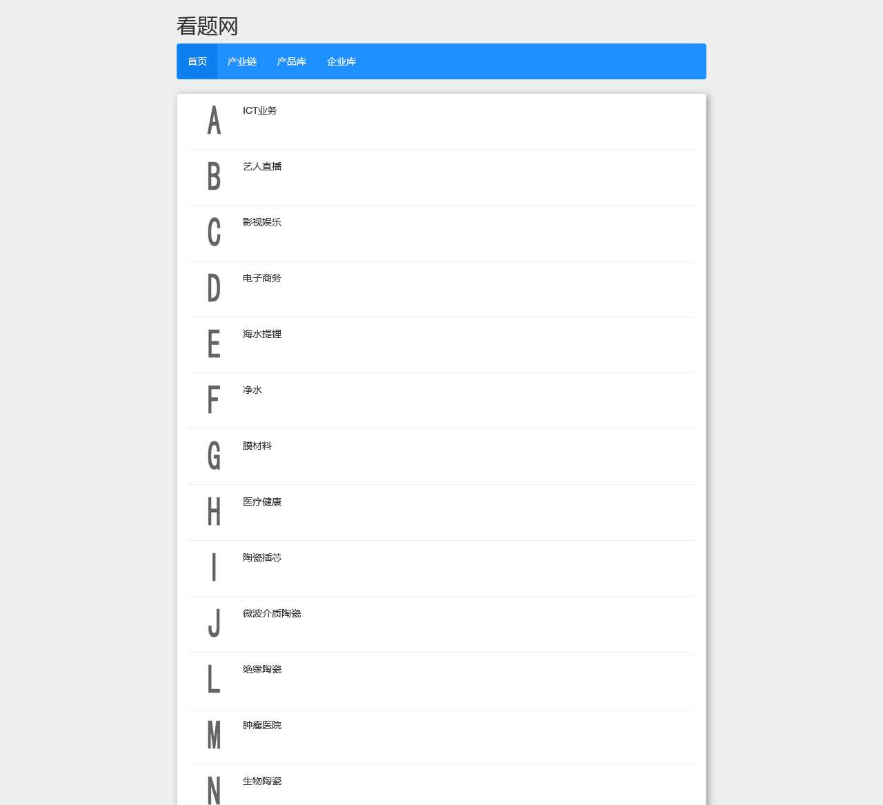 欢迎来到看题网,您的全方位产业链信息平台。我们致力于为您提供最新、最全的产业链信息,涵盖了ICT业务、艺人直播、影视娱乐、电子商务等多个领域。无论您关注的是海水提锂、净水、膜材料还是医疗健康、陶瓷插芯、金属陶瓷等行业,看题网都能为您提供全面的企业库和产品库信息。
