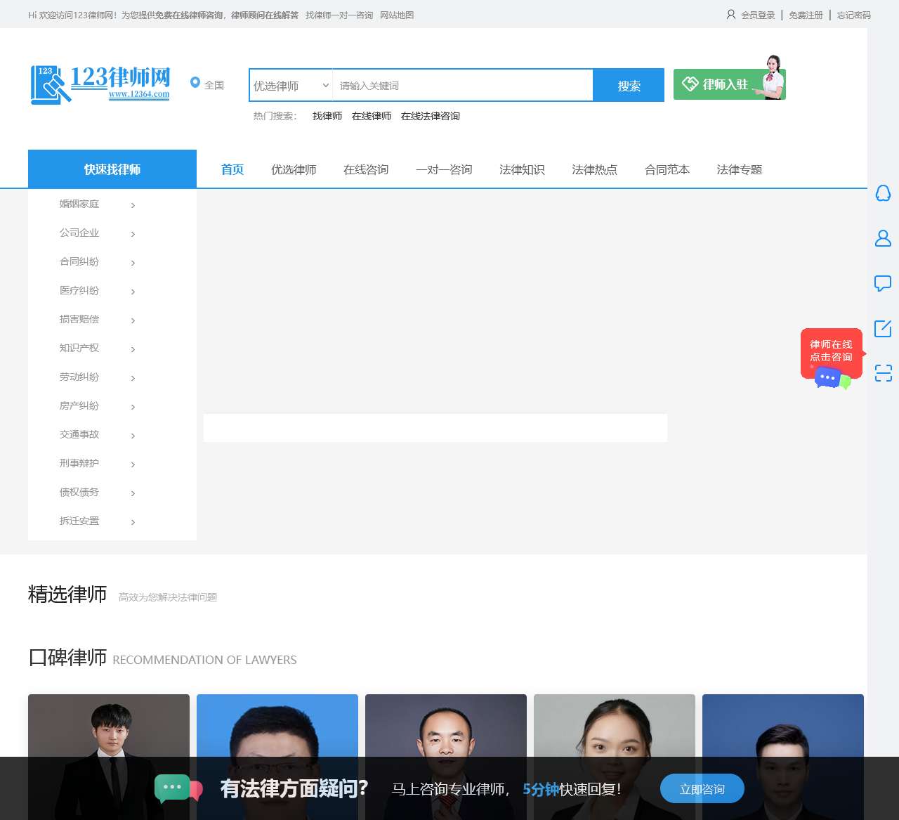 123律师网(12364.com)是一家在线律师咨询平台,专业为律师所及律师提供一个便捷在线为全国各地有法律咨询需求的公众提供免费律师在线咨询服务!