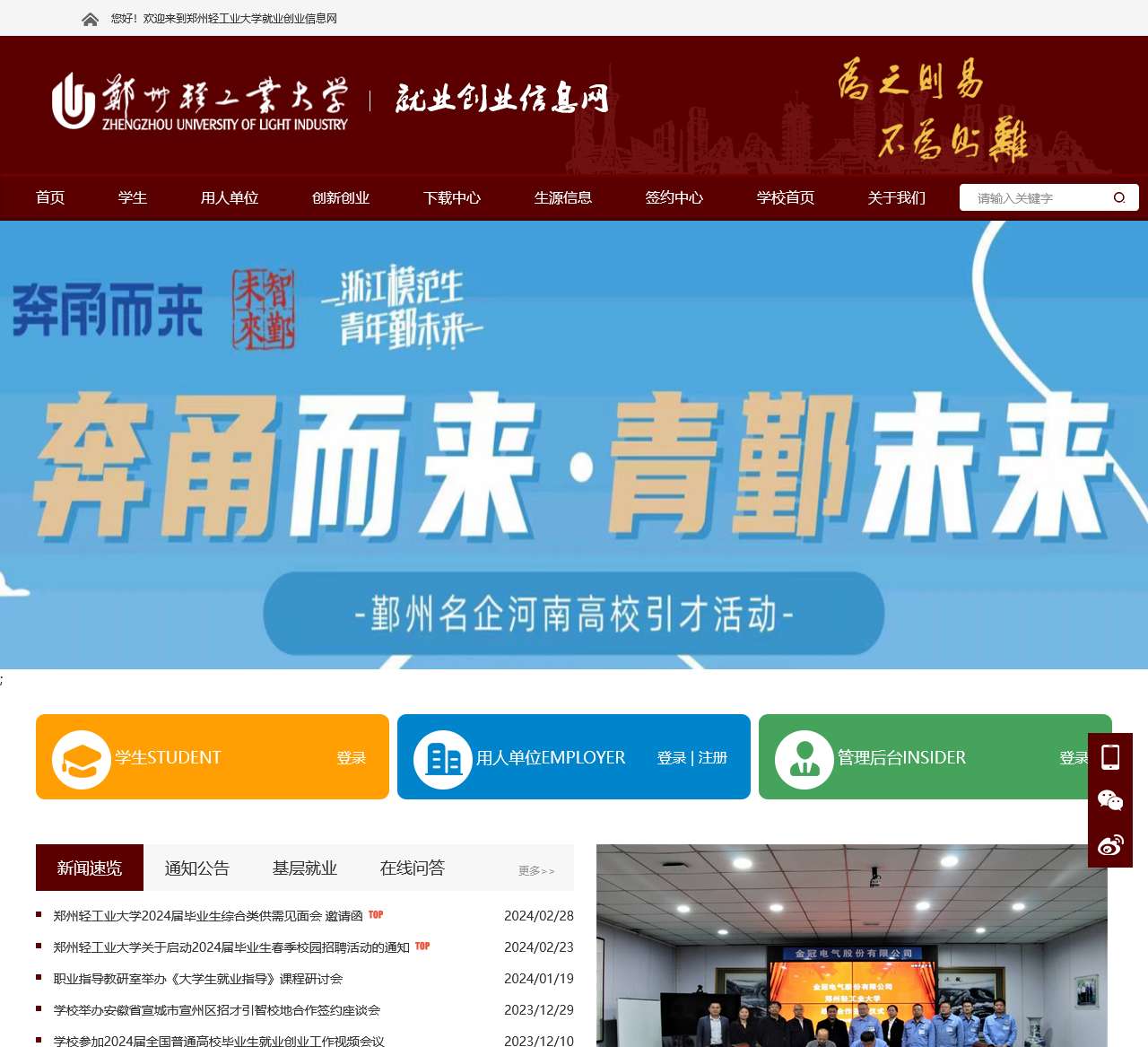 欢迎访问郑州轻工业大学就业创业信息网,我们为您提供全方位的就业和创业服务,协助学生顺利踏入职场,实现自身价值。以下是我们网站的主要内容: