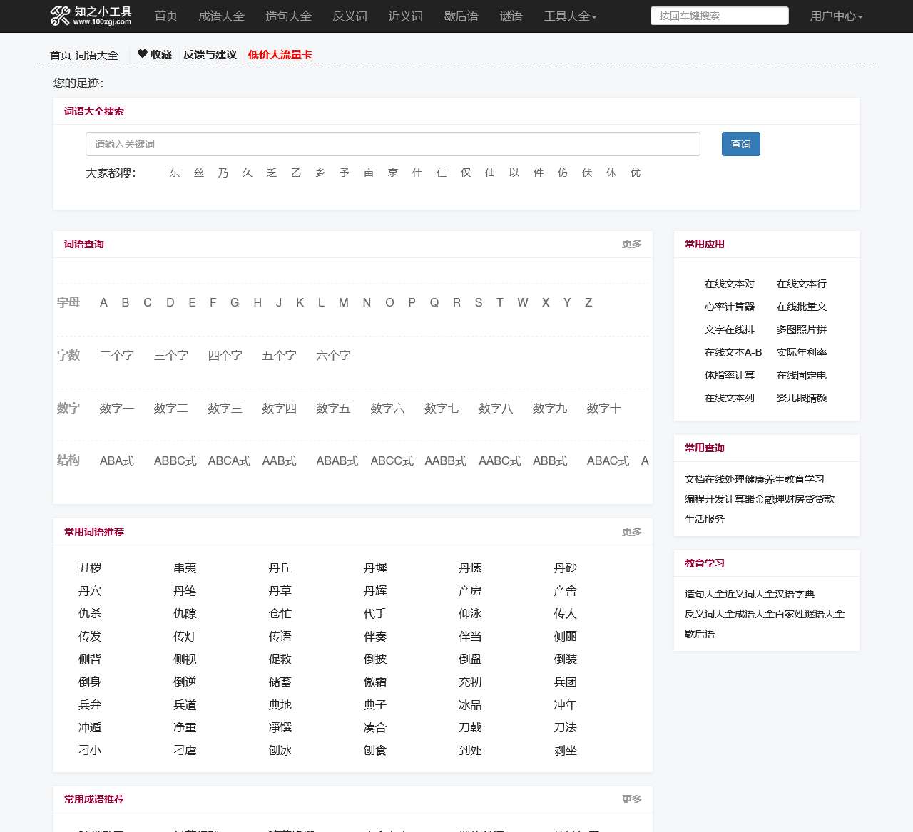 汉语词典是一个提供汉语词语查询的在线平台,致力于为用户提供全面准确的汉语词典服务。我们的网站拥有丰富的词语资源,包括成语大全、造句大全、反义词、近义词、谜语、歇后语等多种内容。另外,我们还提供各种实用工具,包括文档转换、图片转换、健康养生、教育学习、编程开发、金融理财等方面的服务。用户可以轻松地在我们的平台上查找到所需的词语信息,并且可以利用各种工具进行相关操作和处理。