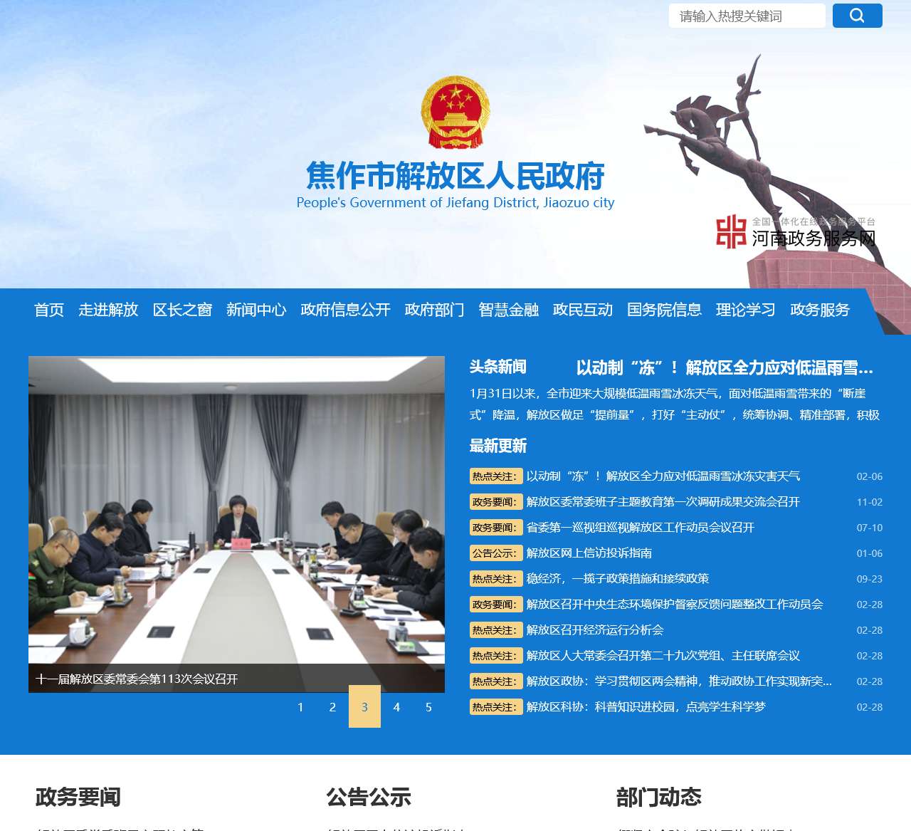 焦作市解放区人民政府网站首页提供了丰富的政府信息和服务导航。以下是针对这些内容的整理: