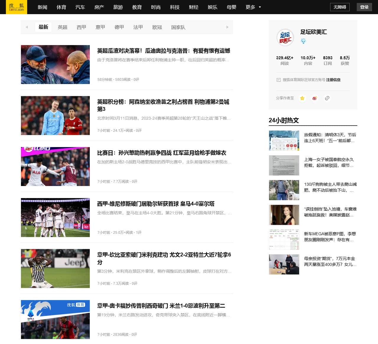 | 英超瓜渣对决落幕!瓜迪奥拉与克洛普:有爱有恨有遗憾 | 英超积分榜:阿森纳坐收渔翁之利占榜首 利物浦第2曼城第3 | 比赛日:孙兴慜助热刺赢争四战 红军蓝月给枪手做嫁衣 | 西甲-维尼修斯破门居勒尔斩获首球 皇马4-0塞尔塔 | 意甲-坎比亚索破门米利克建功 尤文2-2亚特兰大近7轮拿6分 | 意甲-奥卡福妙传普利西奇破门 米兰1-0恩波利升至第二 | 世界第一联赛!英超争冠残酷三国杀 积分榜三强仅差1分 | 英超天王山之战利物浦1-1曼城 萌宝去现场观赛(图) 11图 | 英超-斯通斯破门麦卡点射扳平 利物浦1-1曼城保阿森纳榜首 | 法甲-拉莫斯造乌龙+破门姆巴佩替补登场 巴黎2-2兰斯 | 曝梅西上一场遭凶狠犯规胫骨受伤 能否出战蒙特利尔成疑 |
