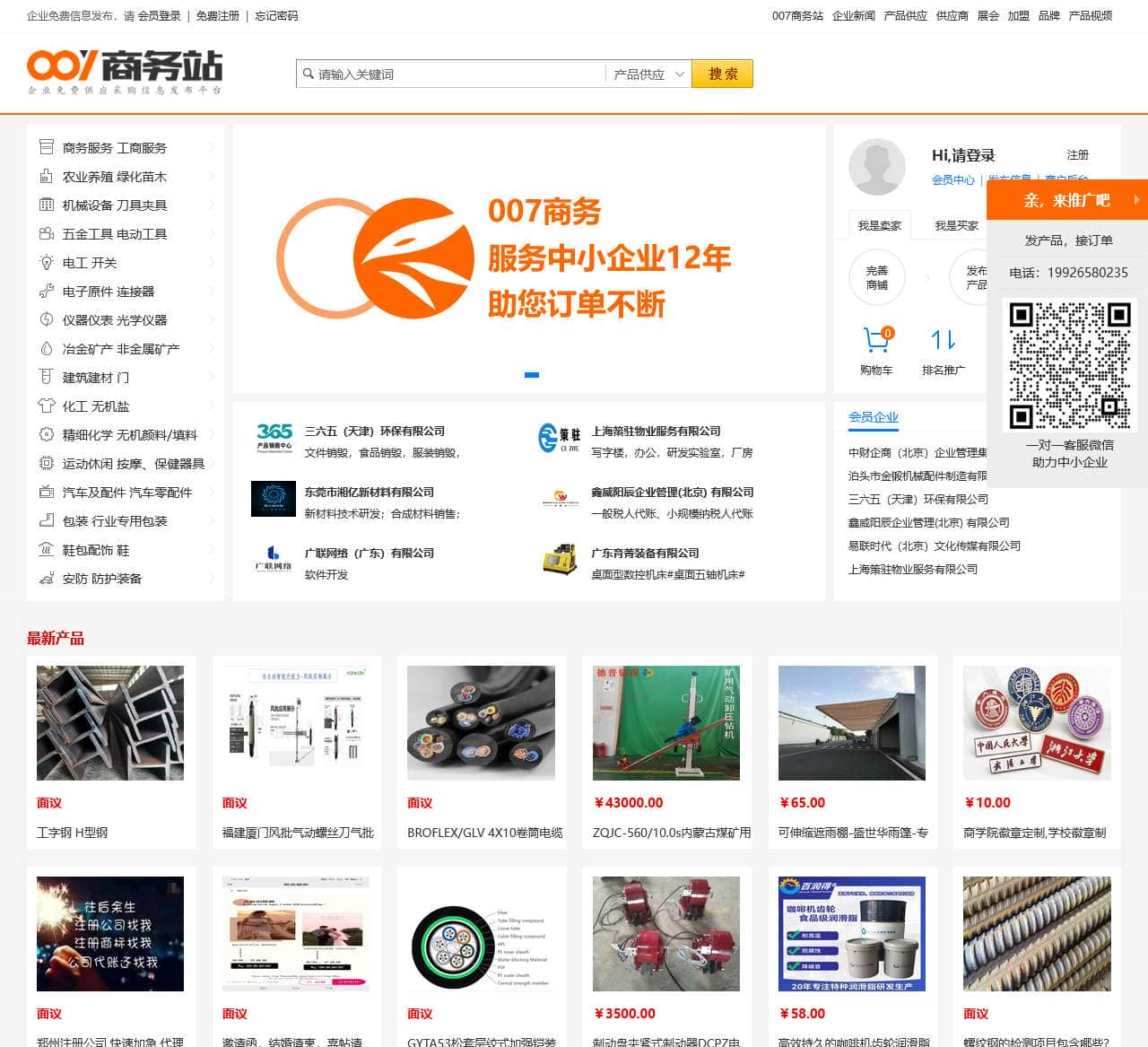 007商务站是一家全球电子商务B2B平台,为用户提供广泛的商务服务和产品供应。以下是该网站首页的内容的整理: