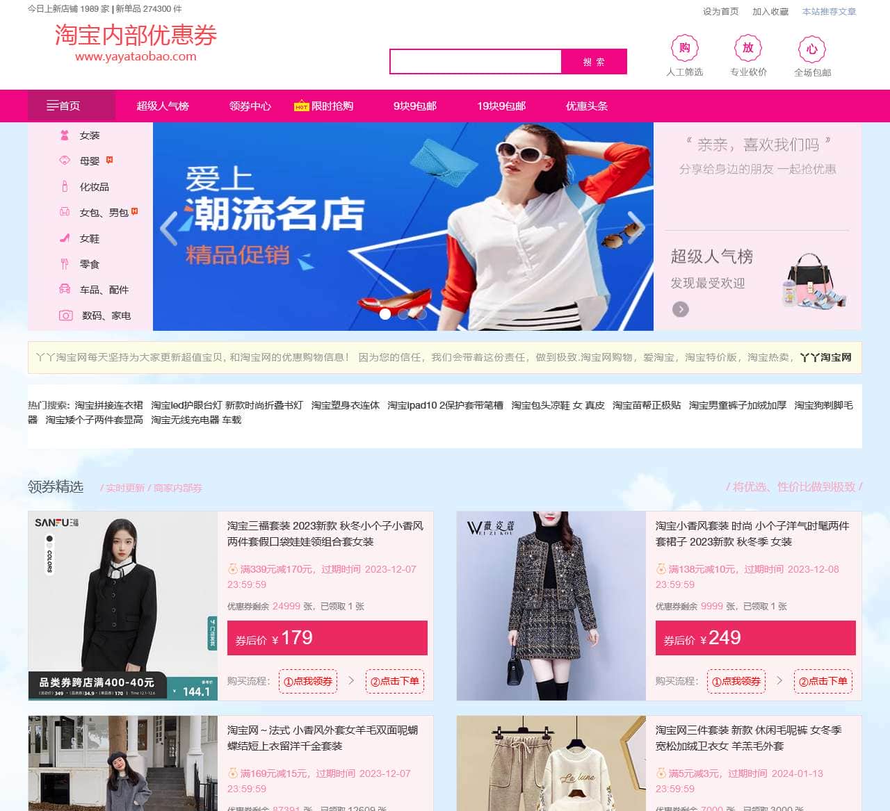 淘宝网还提供多种优惠活动,用户可以通过领券和下单享受优惠。同时,淘宝网也有各种时尚搭配套装和秋冬季新款女装,满足用户的购物需求。