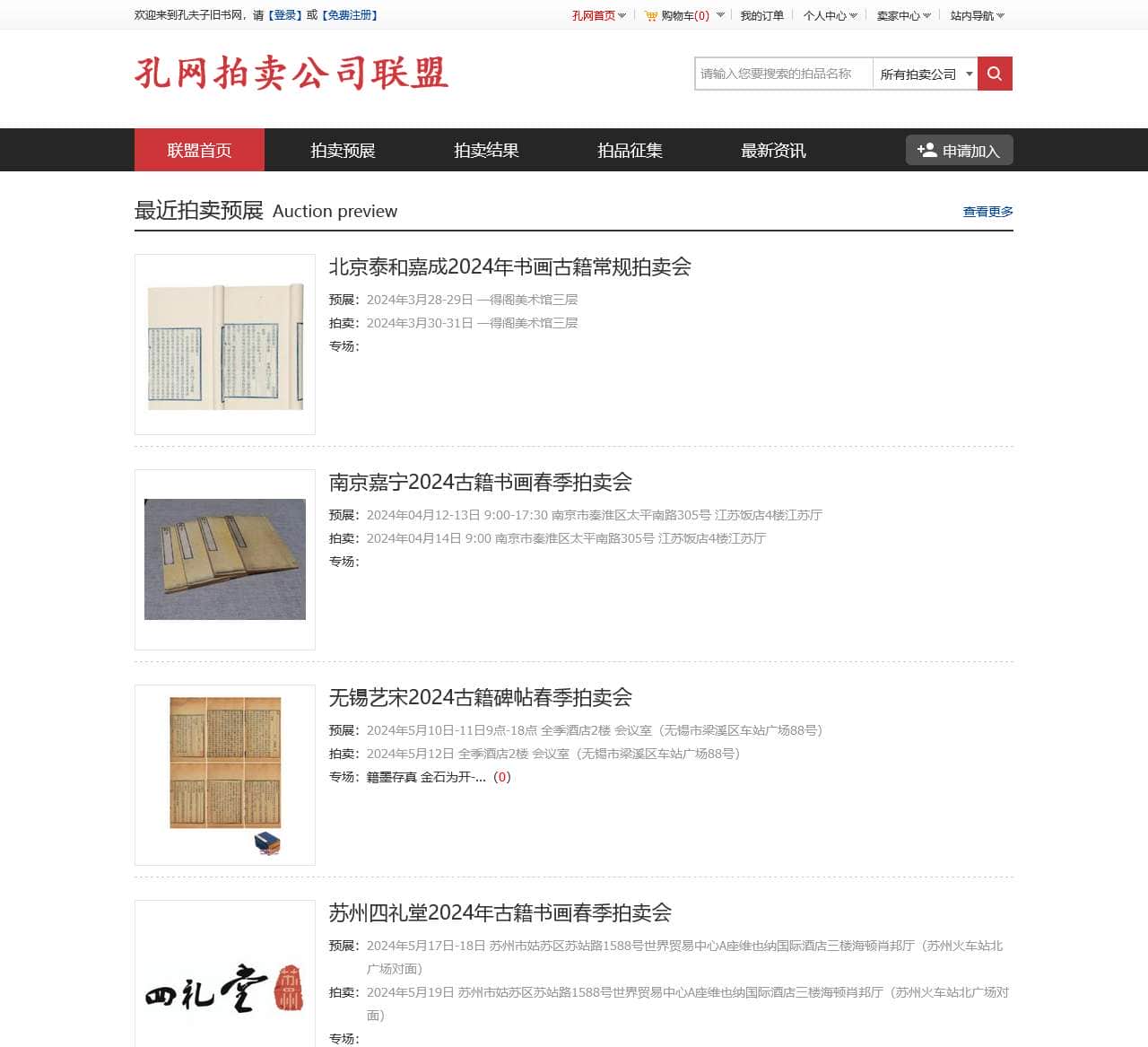 【孔夫子拍卖网】拍卖公司联盟,联合保利拍卖、嘉德拍卖等北京、上海、深圳多地国内知名拍卖公司以及知名拍卖行的公司介绍、拍品征集、拍卖预展、拍卖结果等信息,包括:古籍拍卖、书法拍卖、字画拍卖、收藏拍卖、古玩拍卖等各类在线拍卖预展,为您收集拍卖公司拍卖会资料和竞拍提供最有价值的参考。