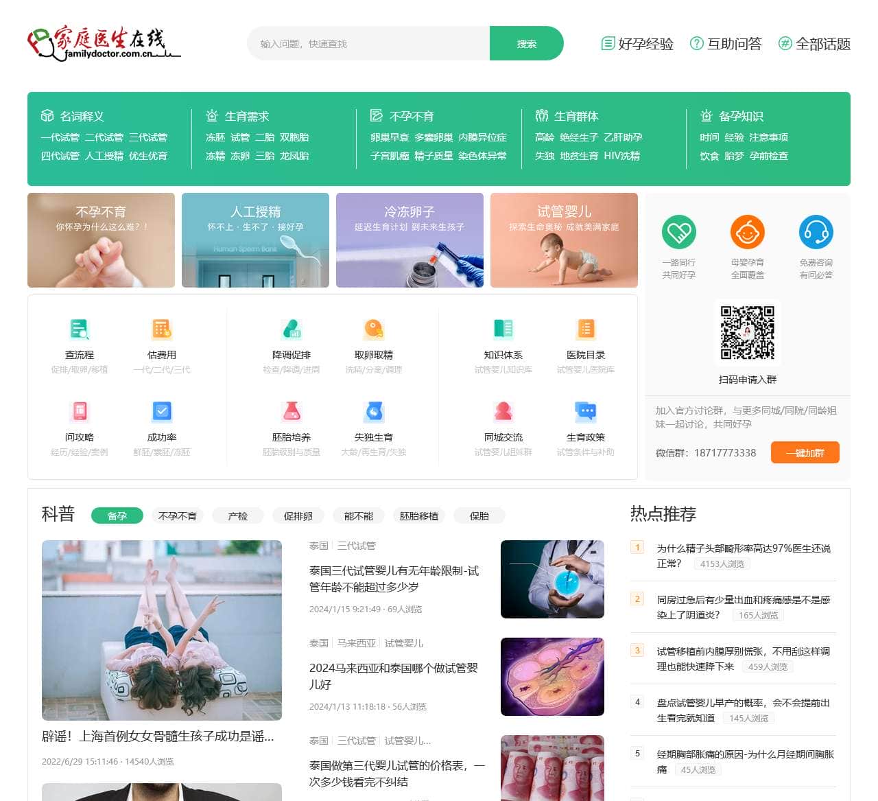 家庭医生在线试管婴儿频道,专业的不孕不育与助孕知识平台,实时更新前沿的试管婴儿资讯,分享实用的试管助孕经验,包括进周促排、胚胎培养与移植、验孕保胎等孕育基础知识。