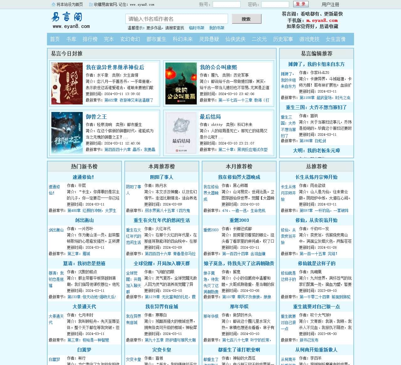 易言阁提供最新免费小说.包括游都市重生,玄幻奇幻,二次元,灵异悬疑,戏竞技,仙侠武侠,历史军事,科幻未来,女生言情等热门分类.找好看的小说,超快网速,更新频繁,为读者提供免费小说,更多精彩尽在易言官网