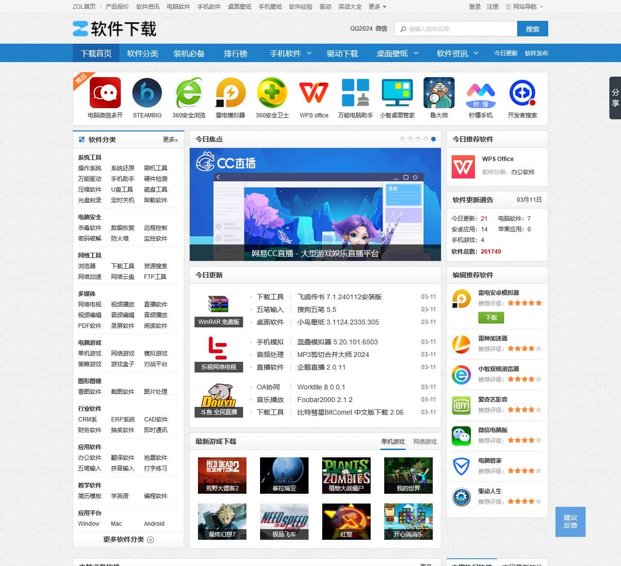 ZOL下载是一个提供免费软件和绿色软件下载的网站,为用户提供丰富的软件资源和技术支持。网站首页包含多个分类和功能,涵盖了电脑软件、手机软件、桌面壁纸、驱动、笑话大全、新闻资讯等内容。