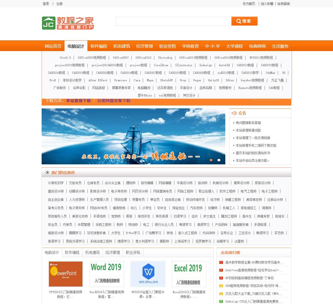 教程之家主要提供Photoshop视频教程、CDR平面设计类视频教程,CAD计算机辅助设计视频教程,EXCEL-office办公软件视频教程,C语言视频教程、C#视频教程,单片机、PLC电子设计视频教程,3DMAX-proe影视动画设计视频教程,瑜伽、学车、太极拳视频教程。