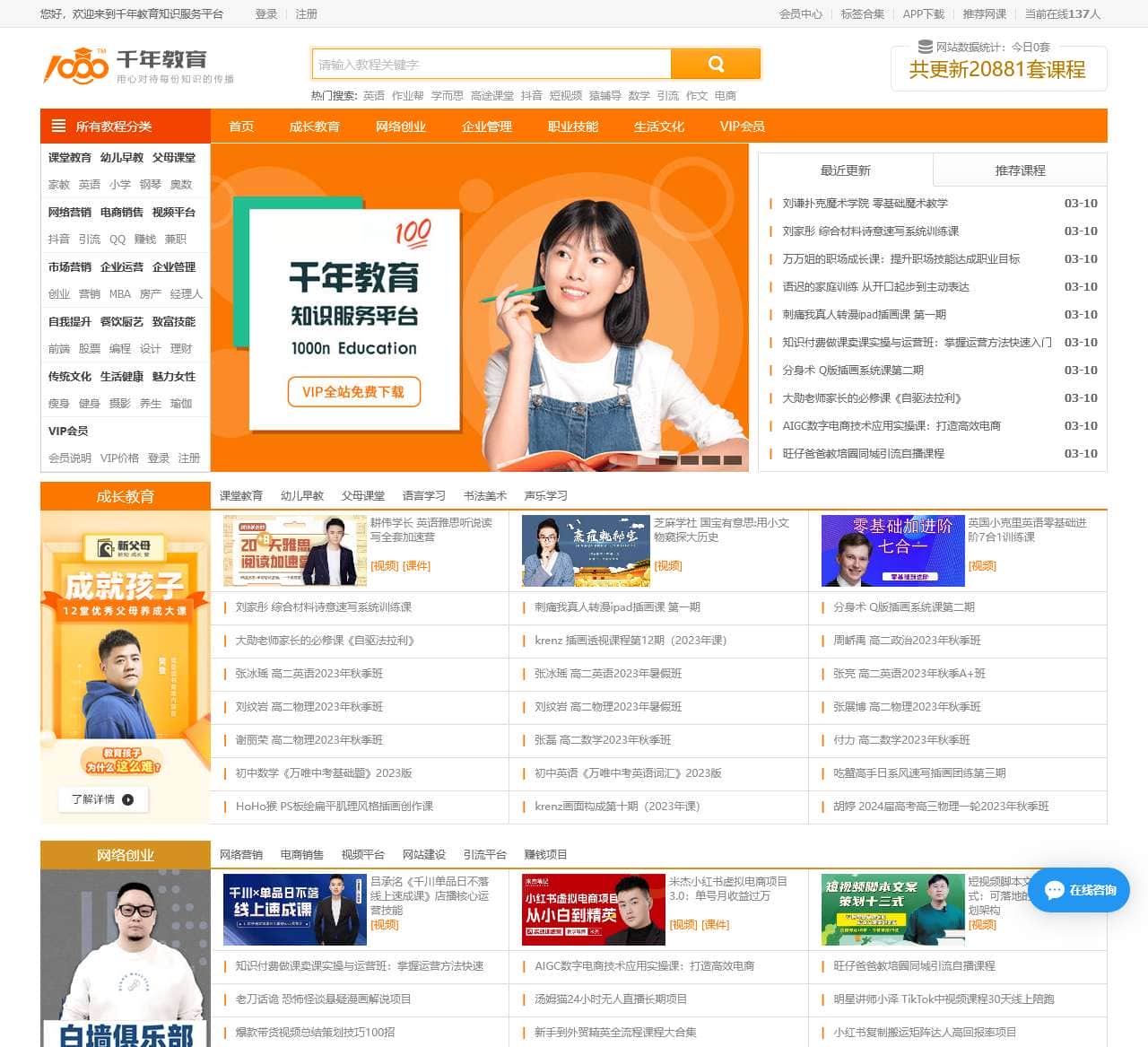 千年教育知识服务平台为您精选各种优质的名师讲座视频,在线培训视频,炒股视频教程,企业个人学习资料,视频培训资料,企业培训课程,讲座下载,考试考研资料,提供各类学习资源在线观看或下载。