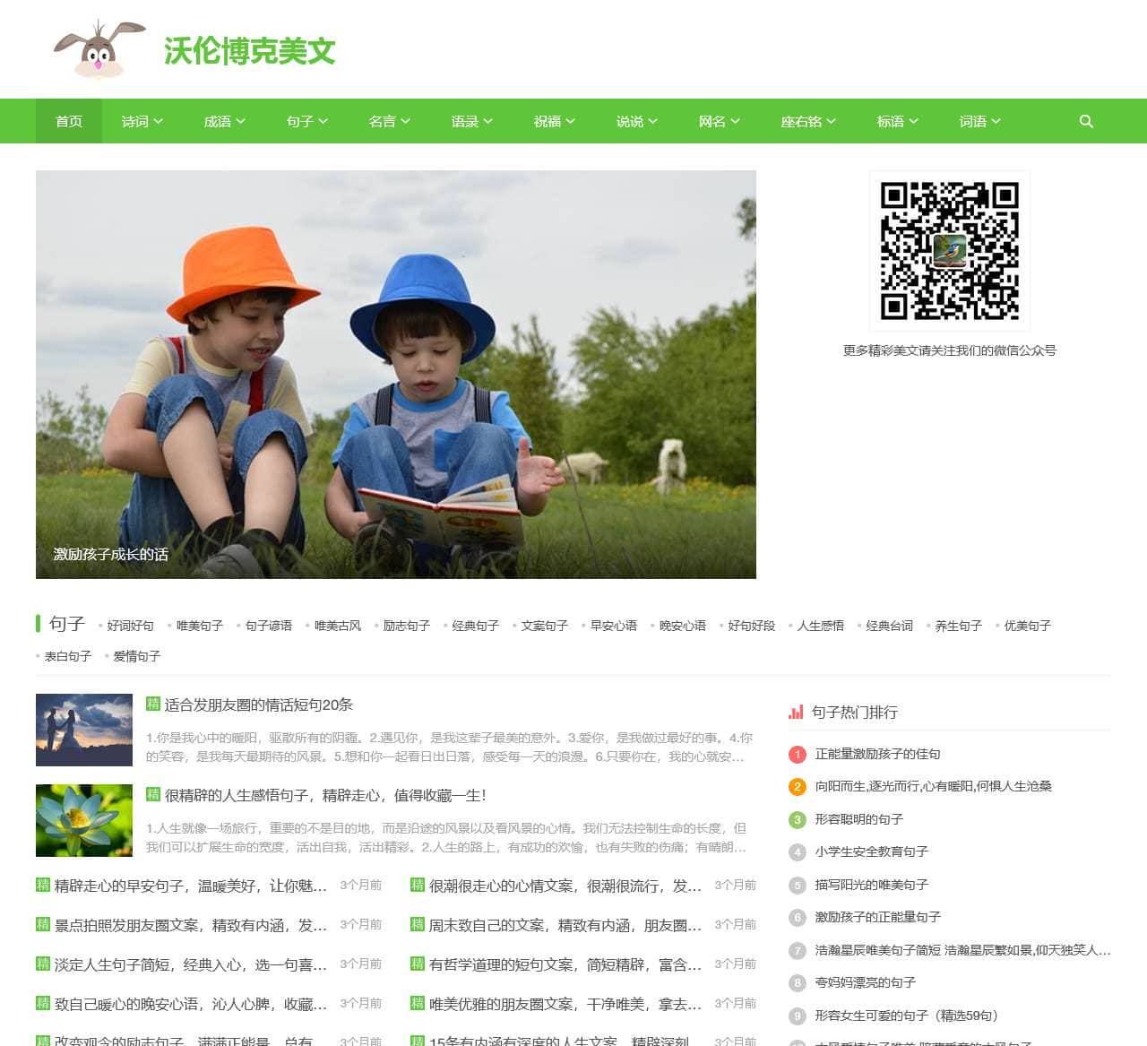 沃伦博克Voaloboka文学致力于为您提供优质实用的美文!无论您喜爱经典诗词还是现代情诗,我们都有您喜爱的内容。春天、夏天、秋天、冬天,每个季节的诗句都能在我们这里找到。除了诗词,我们还提供丰富的成语故事、谜语、歇后语等。若您喜爱优美的句子和古风,我们也不会让您失望。励志、经典、感悟,各种类型的句子都汇聚于此。祝福语也是我们的特色之一,无论是春节、生日、结婚还是其他节日,您都能找到合适的祝福语。另外,我们还提供各种文案,包括心情、朋友圈、搞笑等,让您的社交平台更加生动有趣。同时,我们也关注教育,提供激励孩子成长的话语和安全教育句子。沃伦博克Voaloboka文学将为您提供丰富多彩、美文无限的阅读体验!