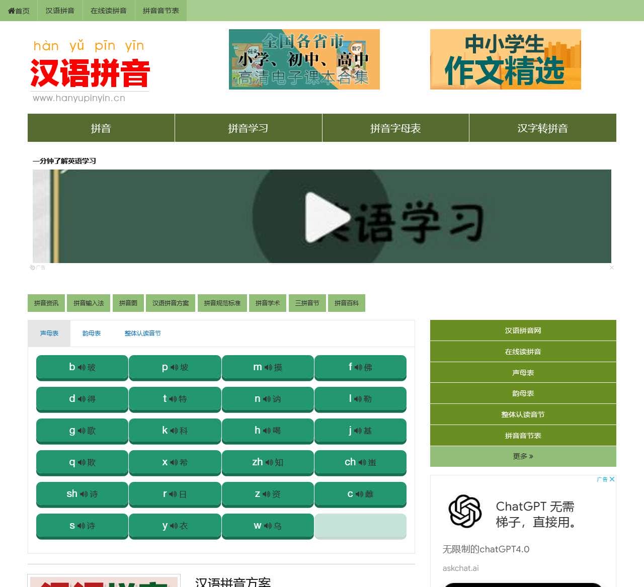 网站链接:汉语拼音网