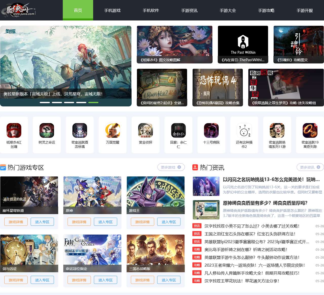 聚俠网是一个提供手机游戏、手机软件、手游资讯、手游攻略和手游开服等内容的网站。以下是首页的内容的整理: