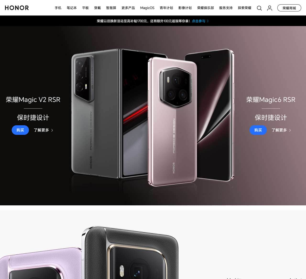 欢迎访问荣耀官方网站,荣耀官网提供荣耀手机(荣耀Magic6系列、荣耀100系列、荣耀Magic V2 RSR|保时捷设计、荣耀Magic Vs2等),以及最新荣耀笔记本、平板电脑、穿戴产品、智慧屏等产品及相关参数详细介绍。