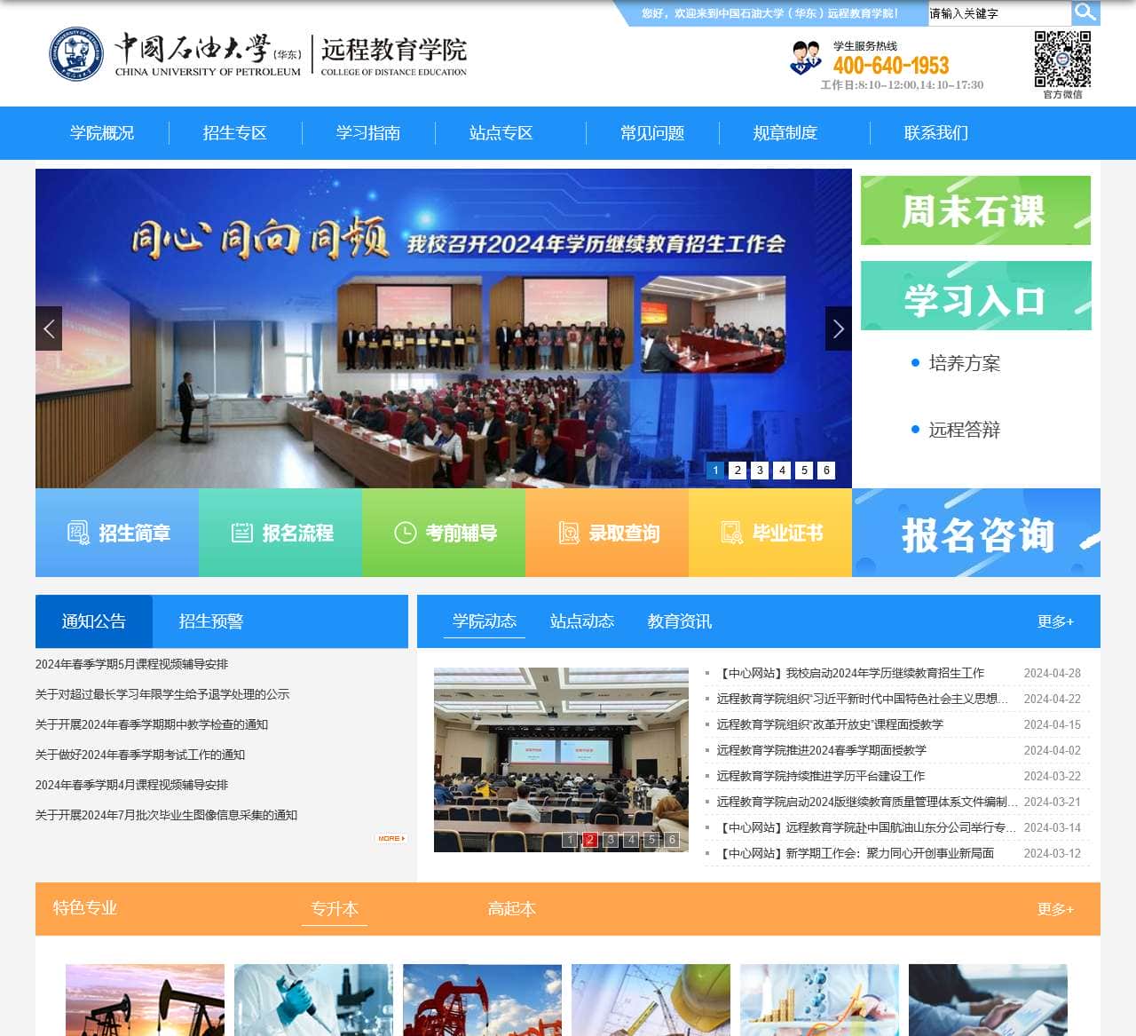 | 我校启动2024年学历继续教育招生… | 招生简章 | 报名流程 | 考前辅导 | 录取查询 | 毕业证书 | |||||||