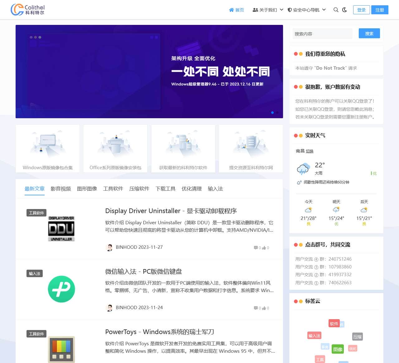 | 软件资源 | Windows原版镜像包合集、Office系列原版镜像安装包、获取最新的科利特尔软件、提交资源至科利特尔网 |