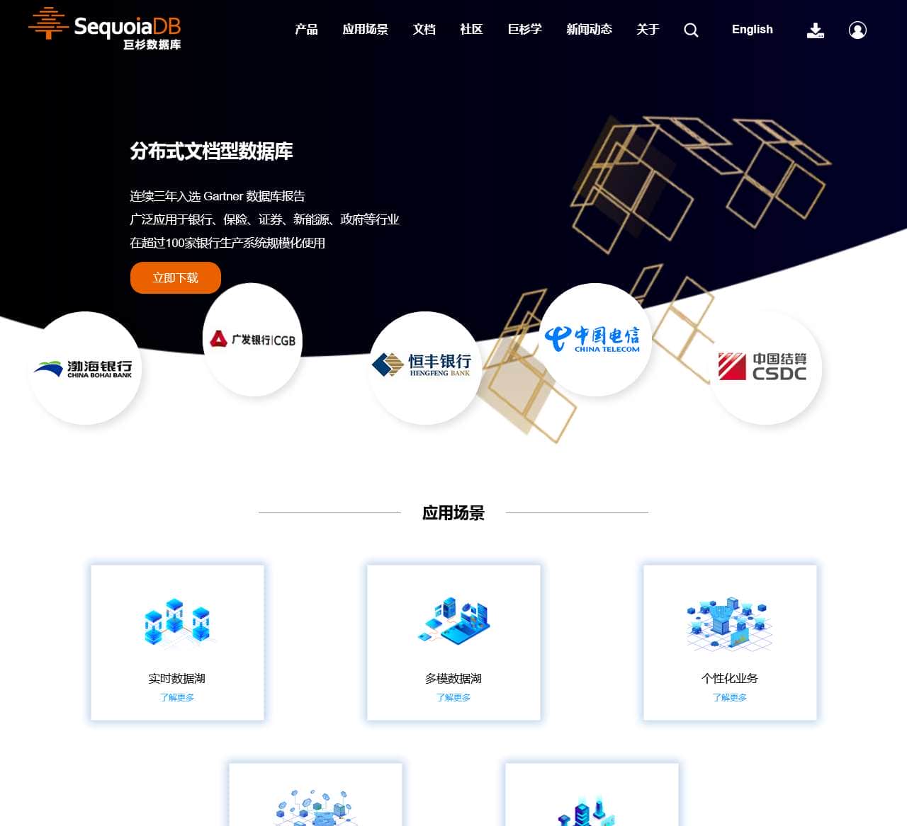 巨杉数据库,首批入选Gartner年度数据库报告的中国数据库产品!坚持产品从零开始自主研发,目前在金融、政府、电信多个行业得到了广泛应用,并在超过30家大中型银行的核心生产系统应用。