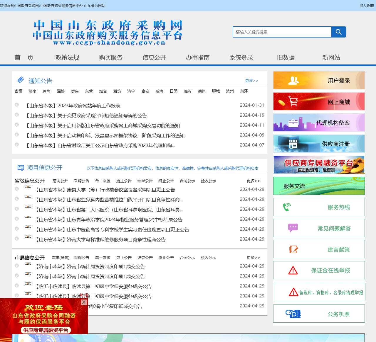关于山东省政府采购信息公开平台特别声明