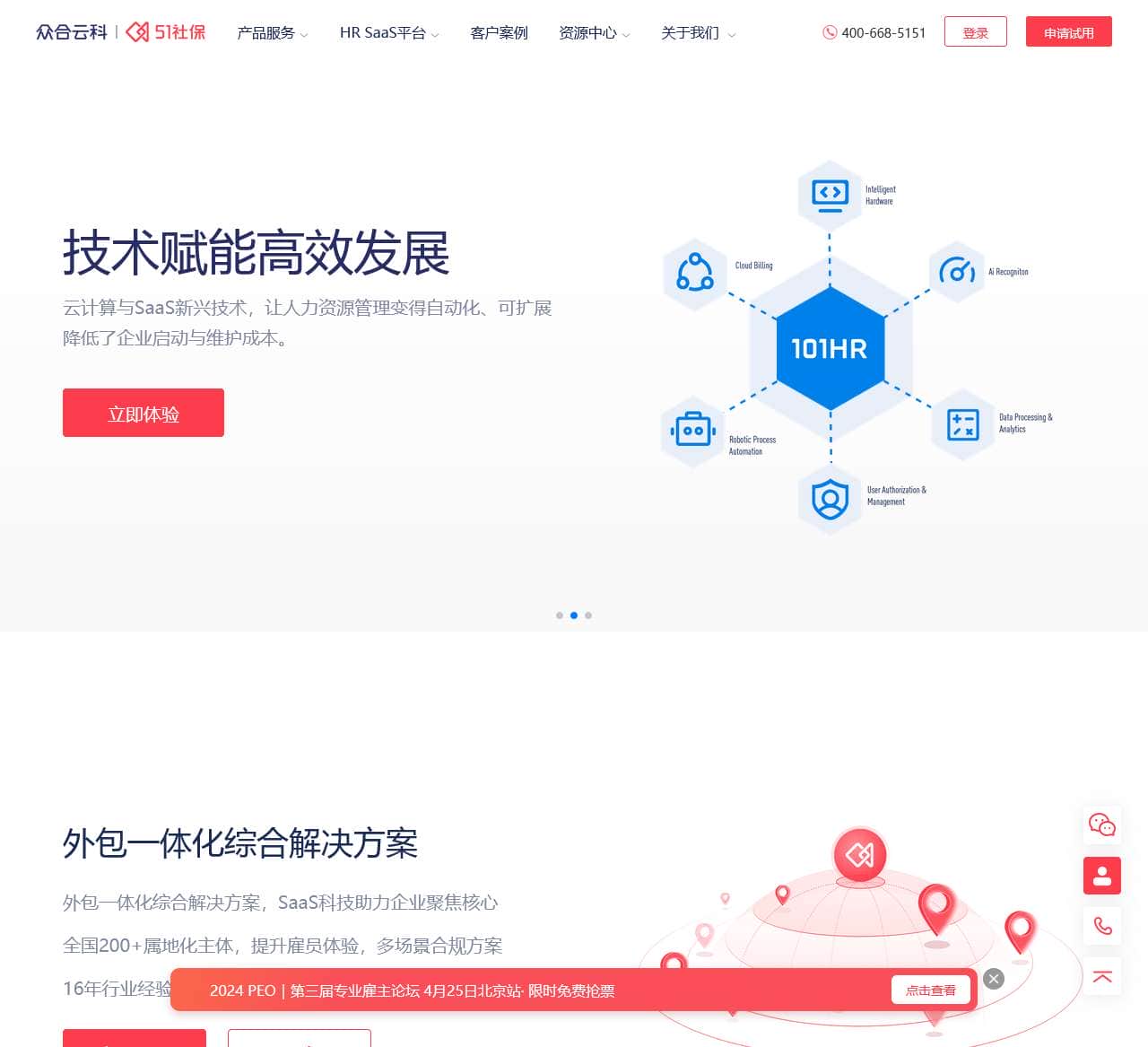 51社保是技术驱动的人力资源服务商,为企业提供外包综合解决方案、社保SaaS服务、企业保险服务等一站式人力资源互联网共享服务