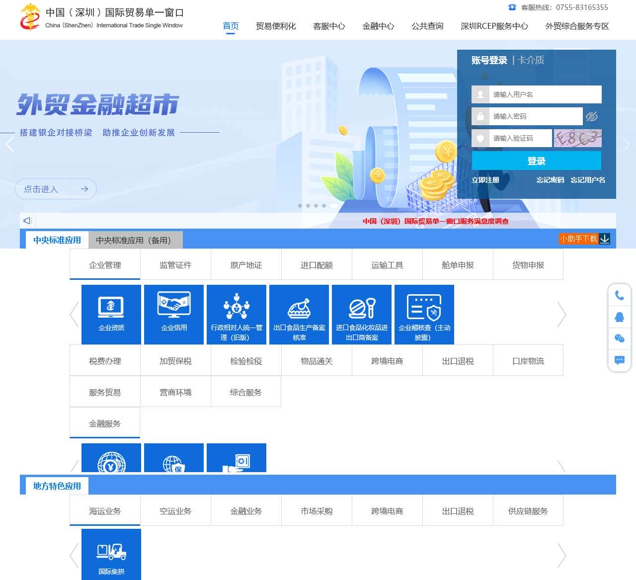中国(深圳)国际贸易单一窗口官方网站 客服热线:0755-83165355
