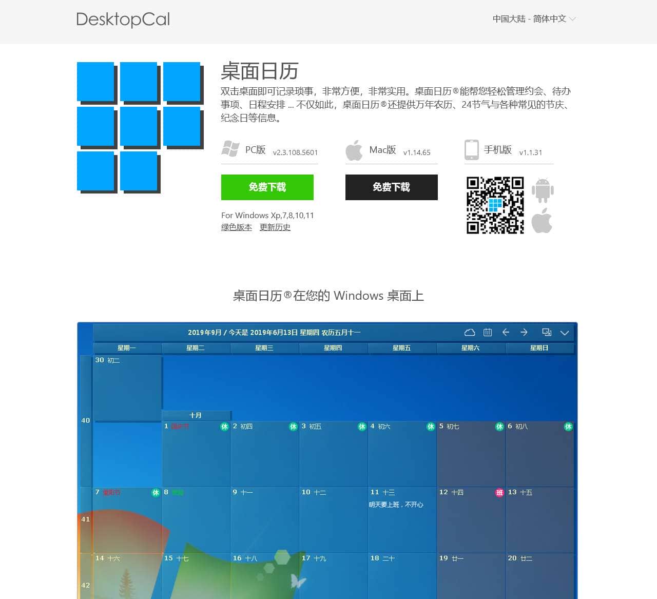 | 中国大陆 | 简体中文 | – 免费下载 – 绿色版本 – 更新历史 – 关于我们 – 捐赠我们 – 用户支持 – 京ICP备16042173号-1 – 最近文章 – 桌面日历PC端和手机端同步 – 如何绑定邮箱登录? – 重大纪念日,可微信提醒 – 教你做一个微信提醒课程表 – 绑定桌面日历公众号失败了怎么办? – 如何解绑桌面日历的微信账号 – 时间管理软件具有哪些强劲功能 – 使用时间管理软件能够带来哪些便利 – Privacy Policy – EULA |