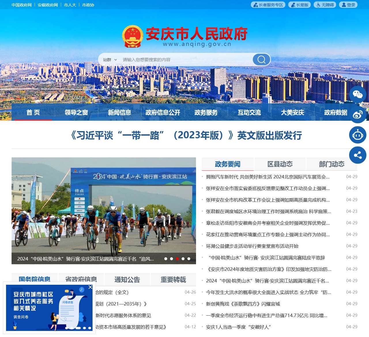 | 导航区 | 安庆市人民政府、中国政府网、安徽政府网、市人大、市政协 |