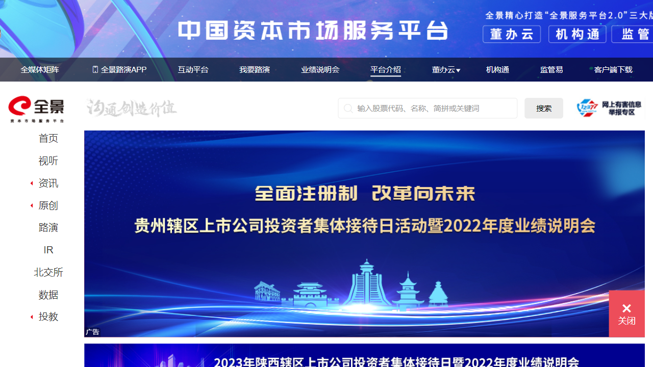 全景网提供7X24小时专业的财经资讯报道;提供专业的网上路演服务和投资者关系互动管理;通过全景资本圈、全景商学院、WE言堂等高端交互平台打造资本圈高端人脉;专注新三板原创深...