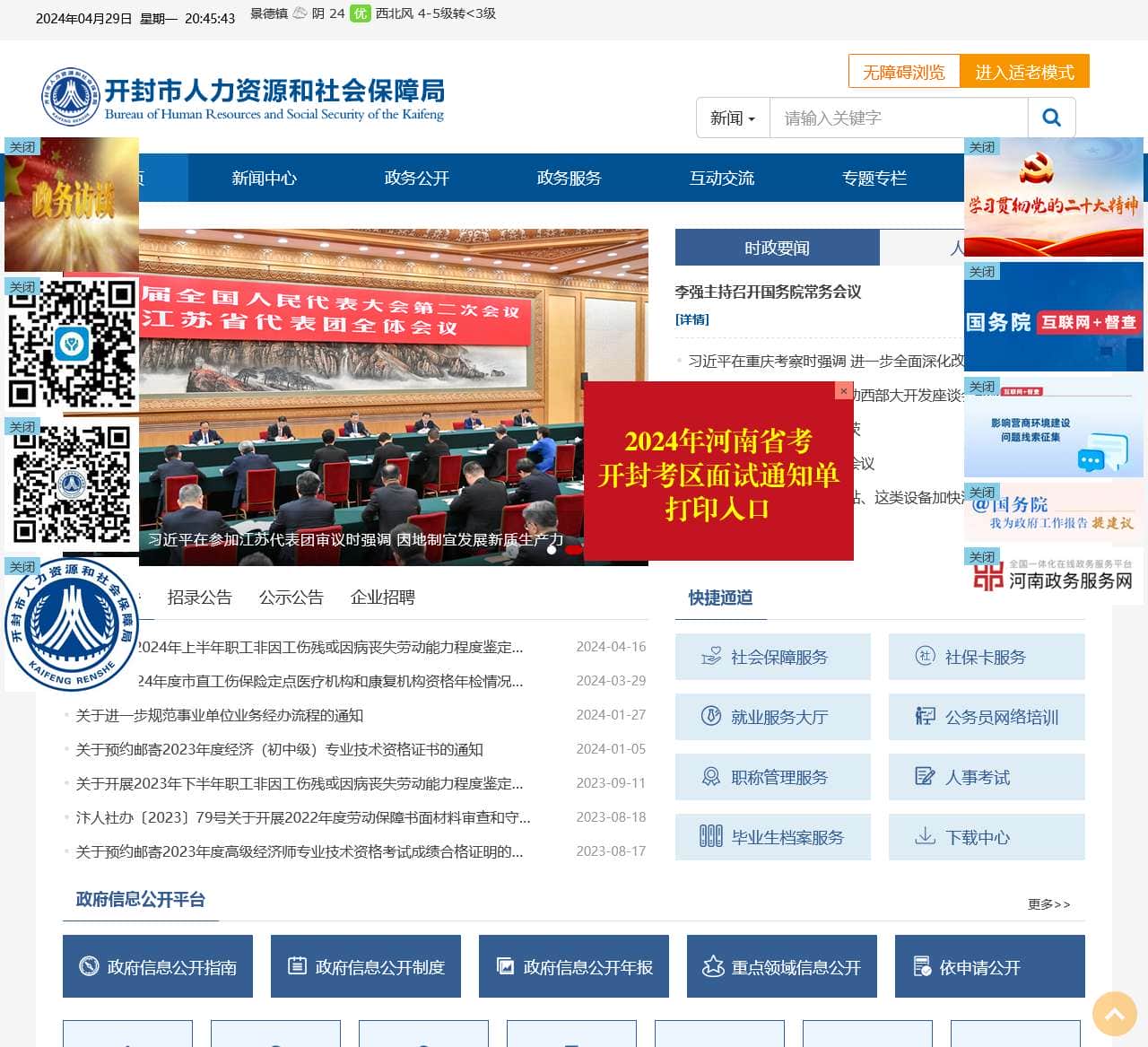 开封市人力资源和社会保障局官网