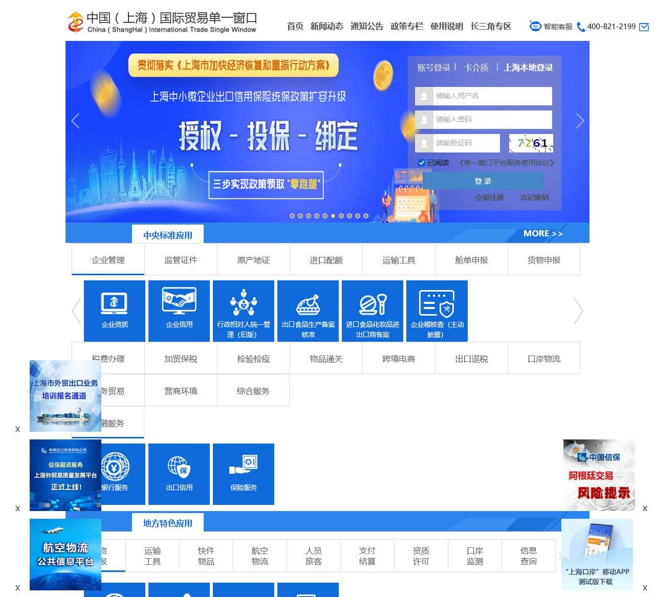 | 新闻动态 | 2024年第一季度例行停机维护 2023年上海国际贸易单一窗口平台运维资金项目满意度调查问卷—企业用户 亿通平台系统维护通知 邮轮申报系统安全升级通知 |