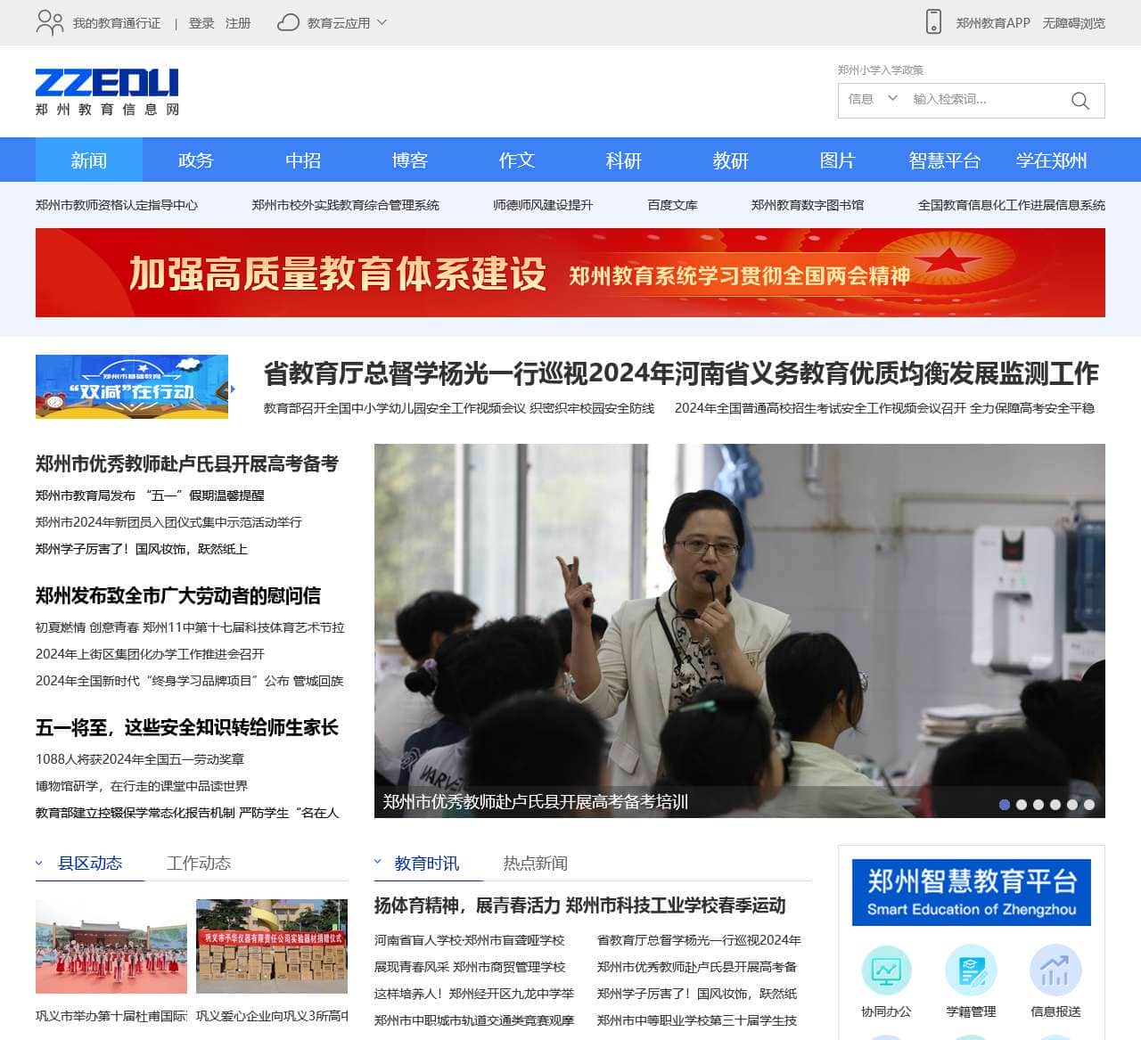 | 郑州教育资源公共服务平台 | 郑州教育手机用户端 | 无障碍浏览 | 郑州教育APP | 郑州小学入学政策 | 新闻 | 政务 | 中招 | 博客 | 作文 | 科研 | 教研 | 图片 | 智慧平台 | 学在郑州 | 二七 | 金水 | 惠济 | 登封 | 郑东 | 中牟 |