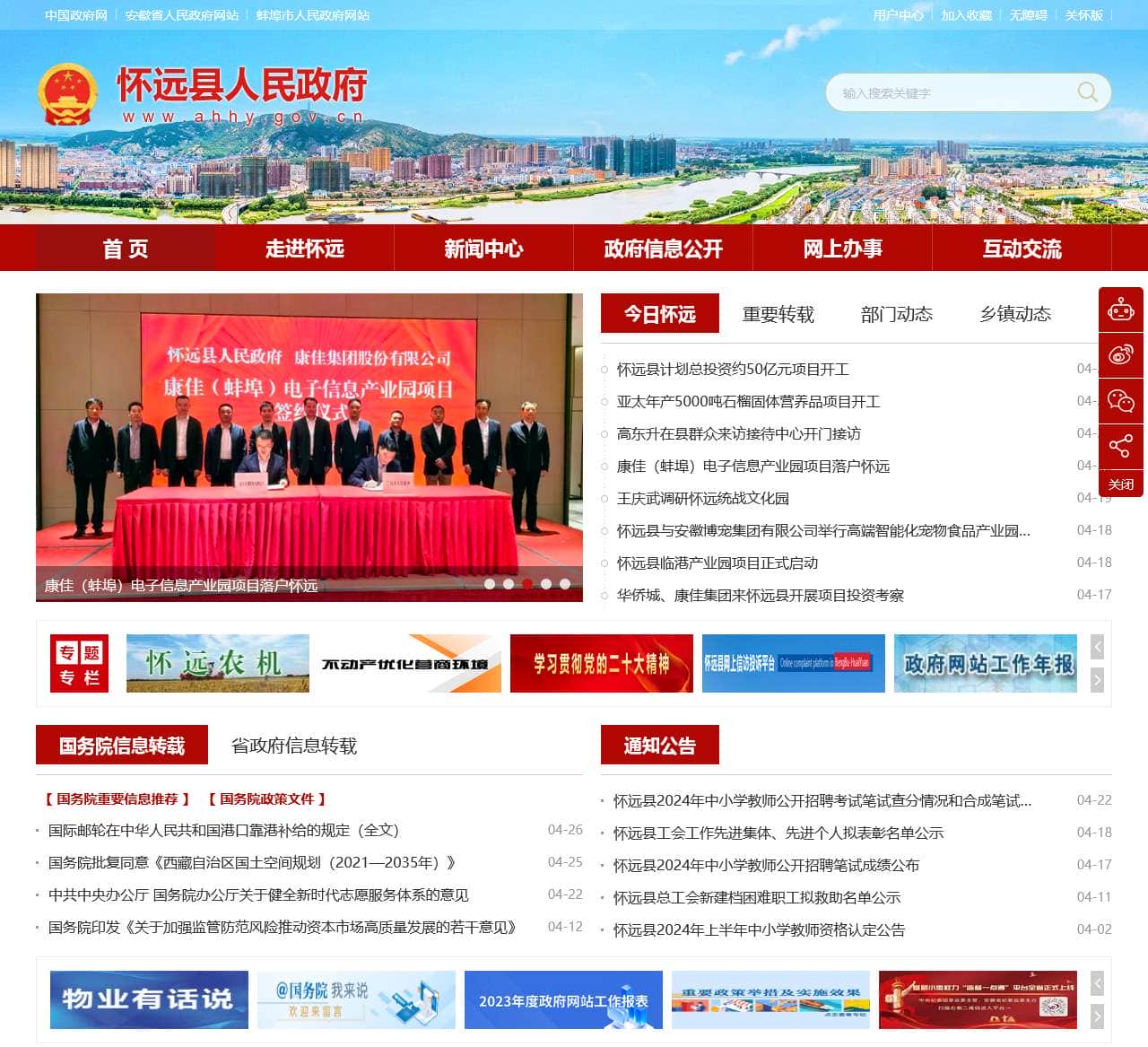 | 7 | 怀远县临港产业园项目正式启动 | 预决算及三公经费 | |