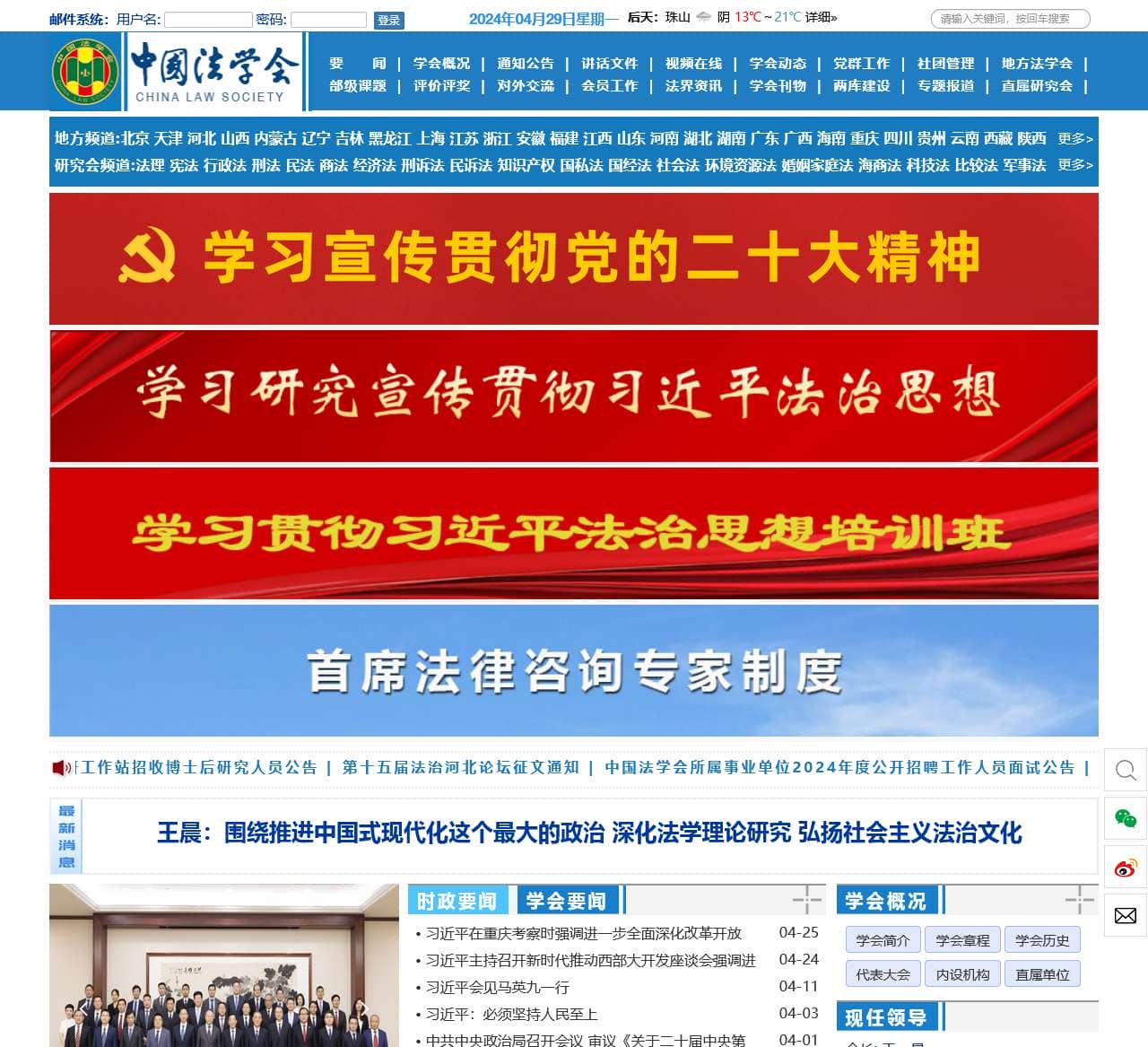 | 要闻 | 学会概况 | 通知公告 | 讲话文件 | 视频在线 | 学会动态 | 党群工作 | 社团管理 | 地方法学会 | 部级课题 | 评价评奖 | 对外交流 | 会员工作 | 法界资讯 | 学会刊物 | 两库建设 | 专题报道 | 直属研究会 |