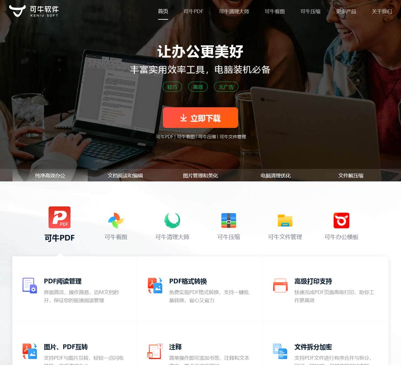可牛官网-可牛清理大师_可牛PDF_可牛看图_可牛压缩,高效办公用可牛_无广告更纯净