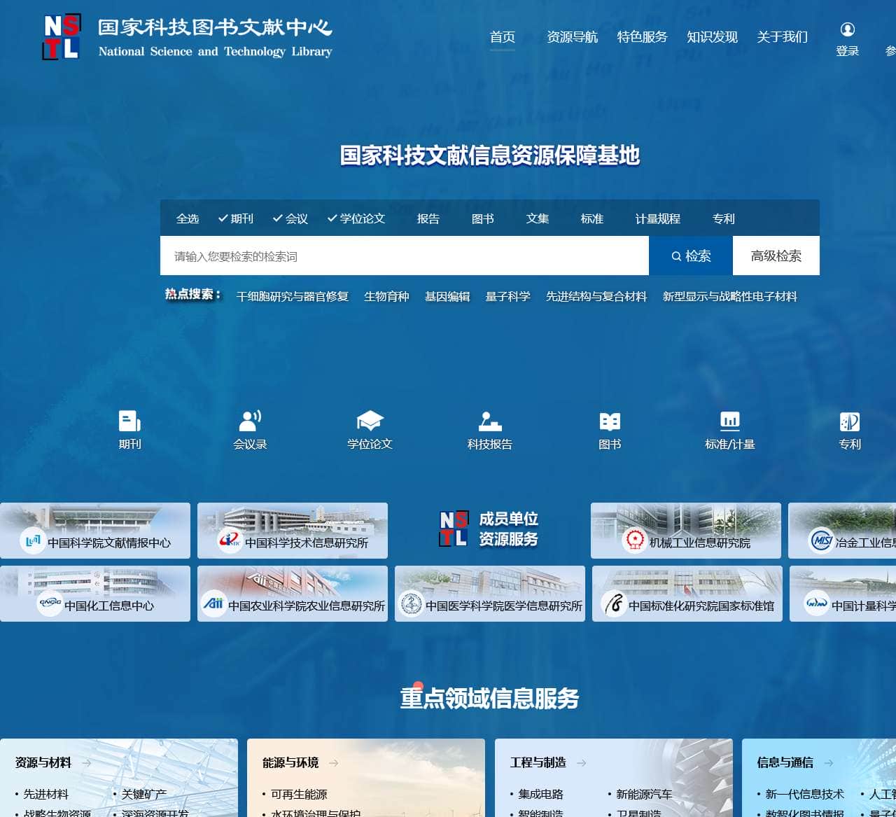| 服务内容 | NSTL快报简报、NSTL研究报告、全国开通服务、部分开通数据库、产业统计数据、馆藏目录等 |