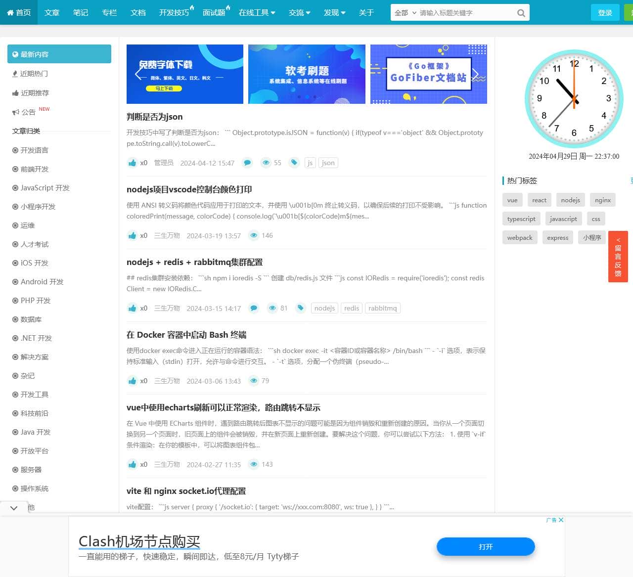 | 更多 | vue react nodejs nginx typescript javascript css webpack express 小程序 移动站 免费字体 高清壁纸 |