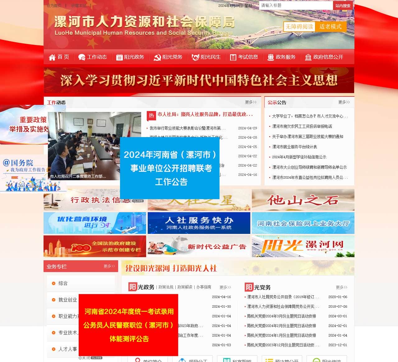 | 考试录用 | 河南省2024年度统一考试录用公务员人民…、2024年河南省(漯河市)事业单位公开招… |