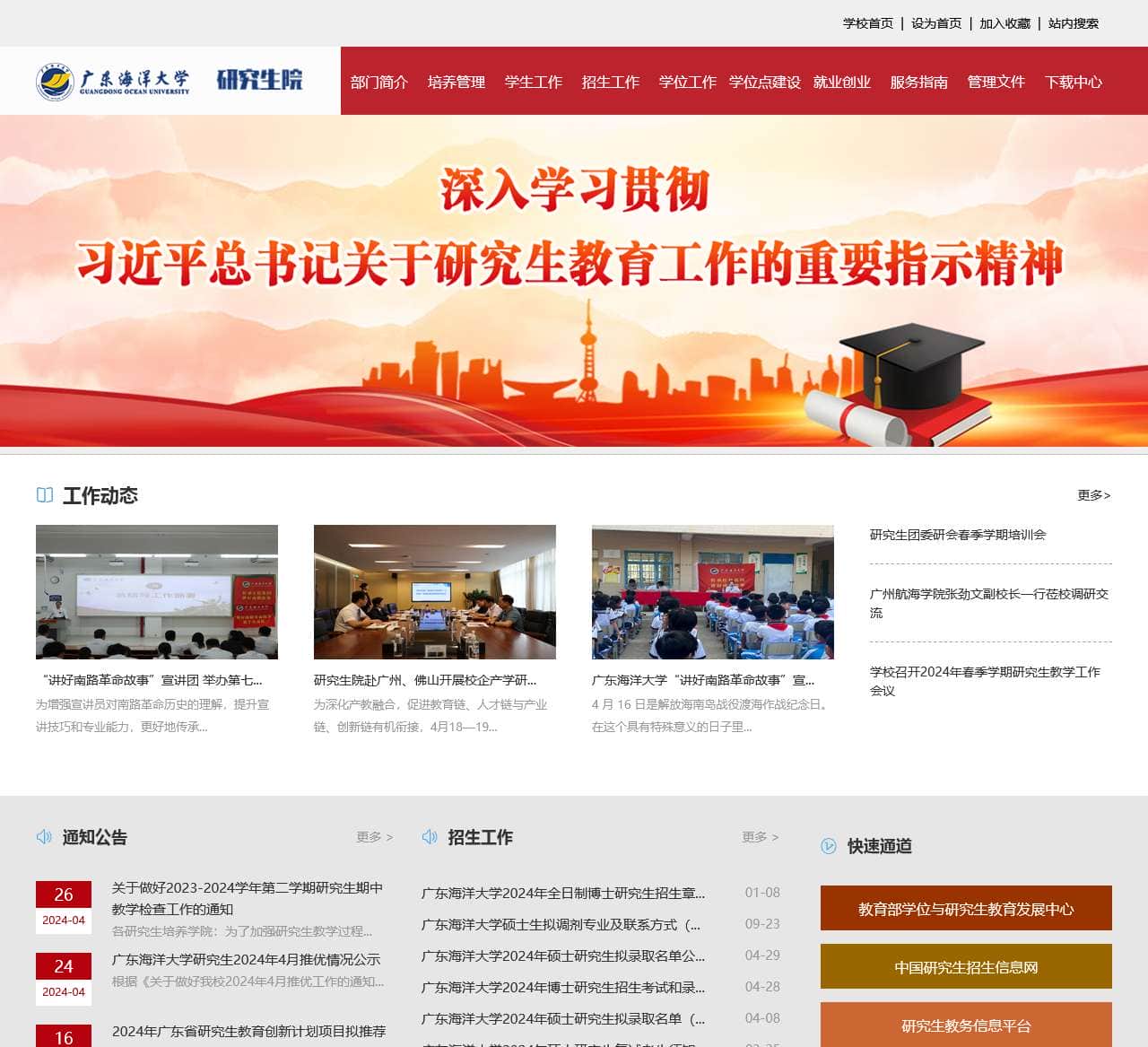| 通知公告 | 关于做好2023-2024学年第二学期研究生期中教学检查工作的通知 广东海洋大学研究生2024年4月推优情况公示 2024年广东省研究生教育创新计划项目拟推荐名单公示 关于开展2024年研究生导师遴选工作的通知 |