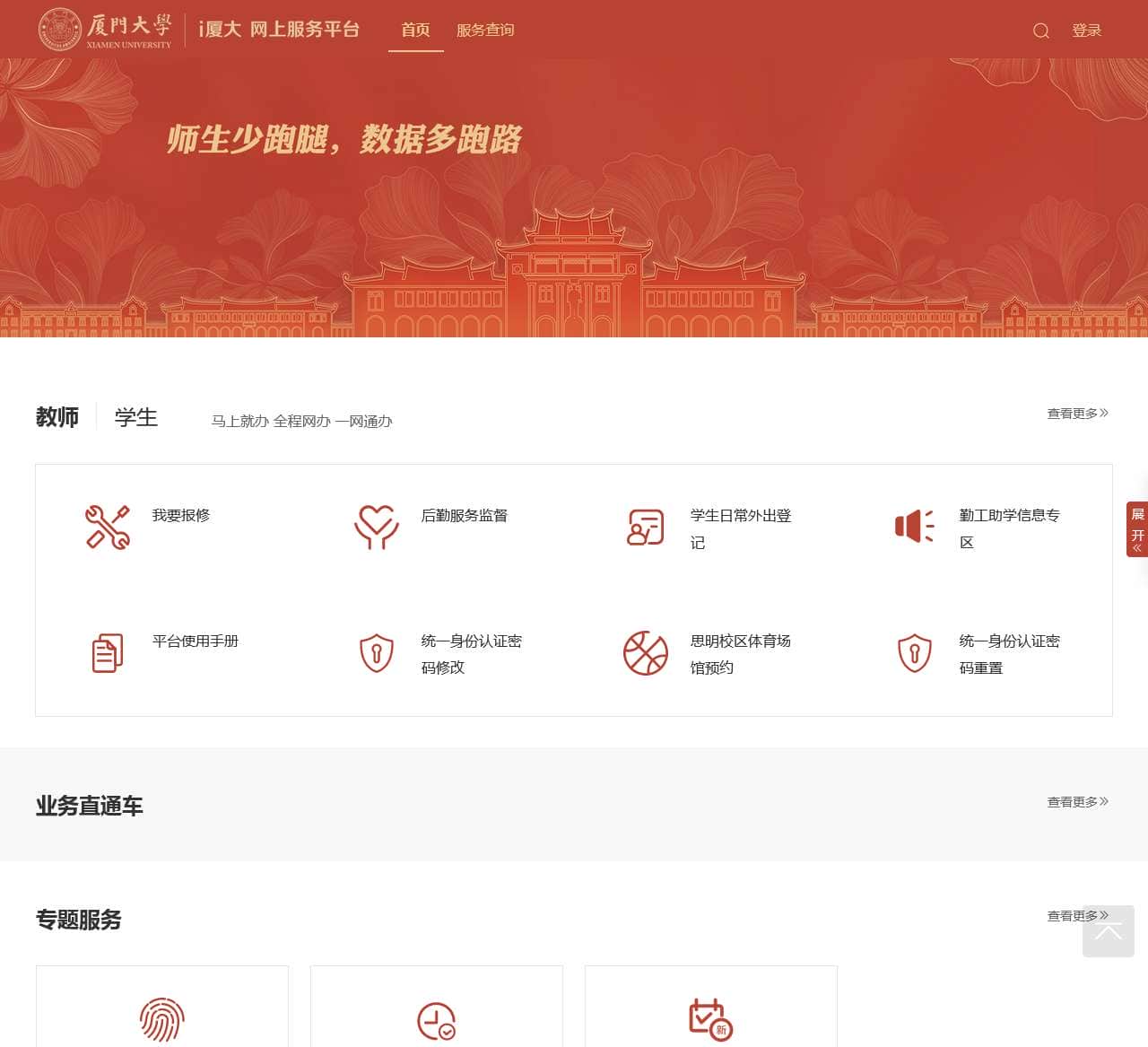 | 登录 | 密码服务 | 场馆预约 | 新生专题 | 学生工作部(处)/人民武装部 | 信息与网络中心 | 图书馆 | 学校办公室 |