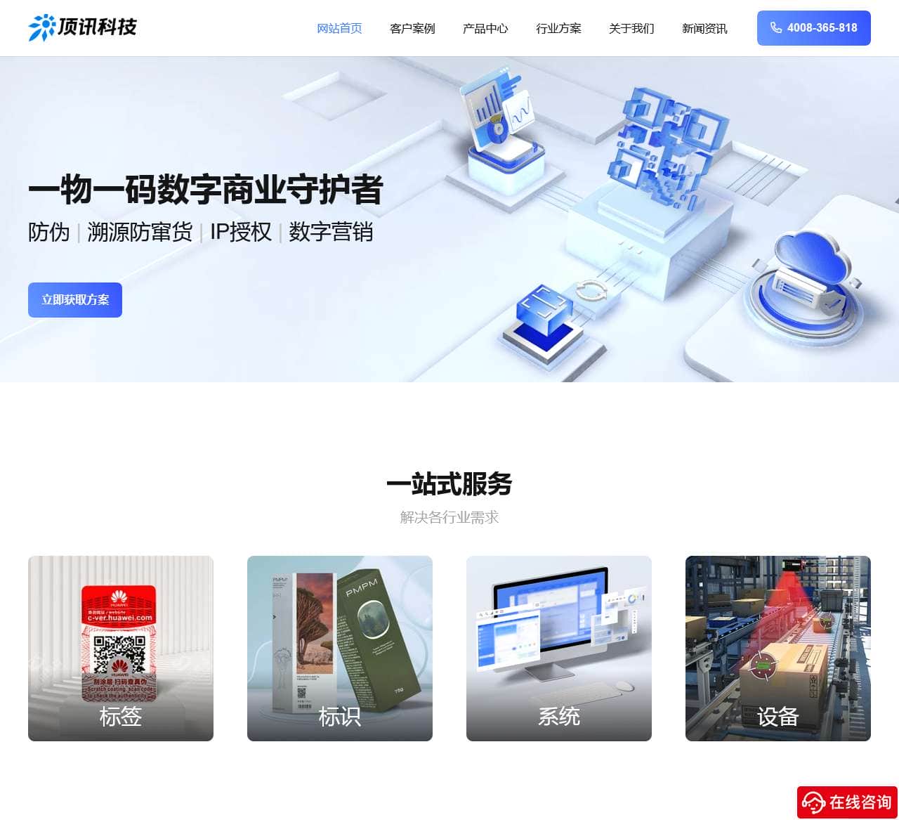 顶讯科技,一物一码数字商业守护者,服务覆盖全球多个国家地区。通过防伪标签、为企业提供防伪保护、溯源防窜、IP授权、数字营销等一物一码服务。有效遏制假货流通,保护品牌价值,提高用户信任,促进市场销售。