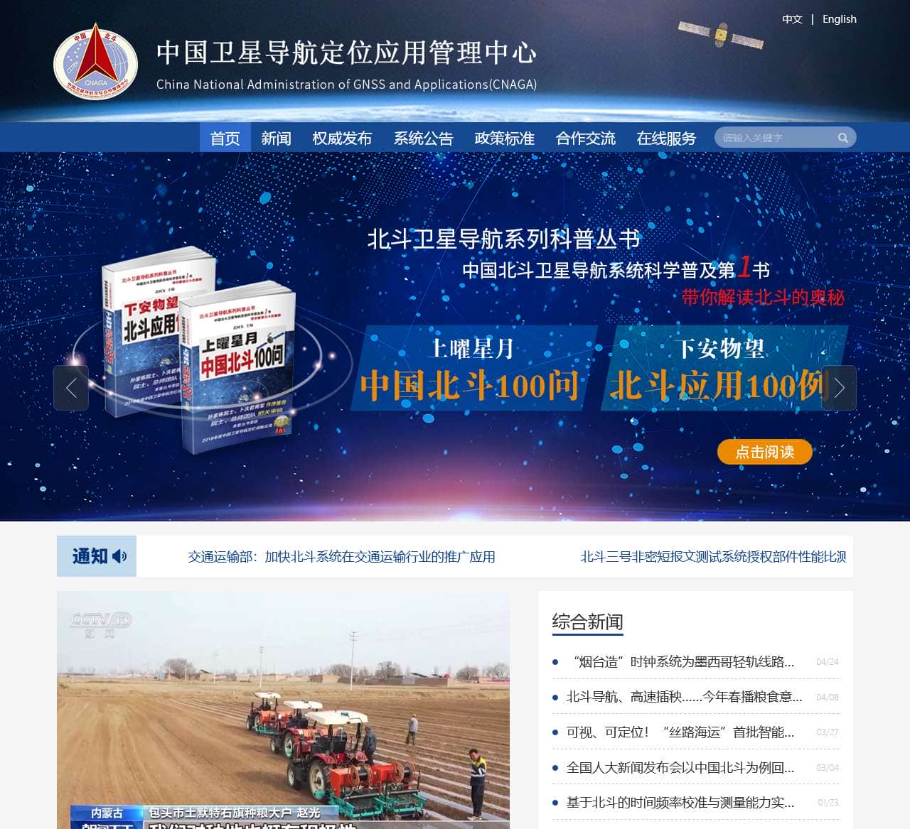 | 中国卫星导航定位应用管理中心 | 首页、新闻、权威发布、系统公告、政策标准、合作交流、在线服务 |