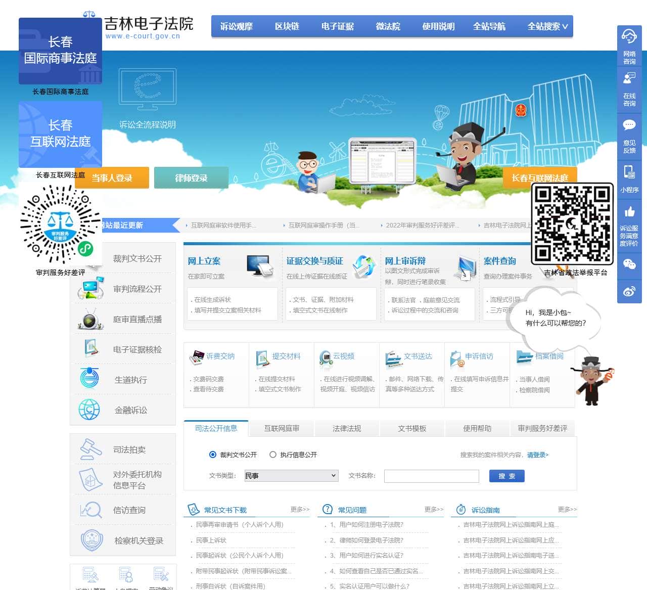 | 法庭服务 | 长春互联网法庭、长春国际商事法庭 |
