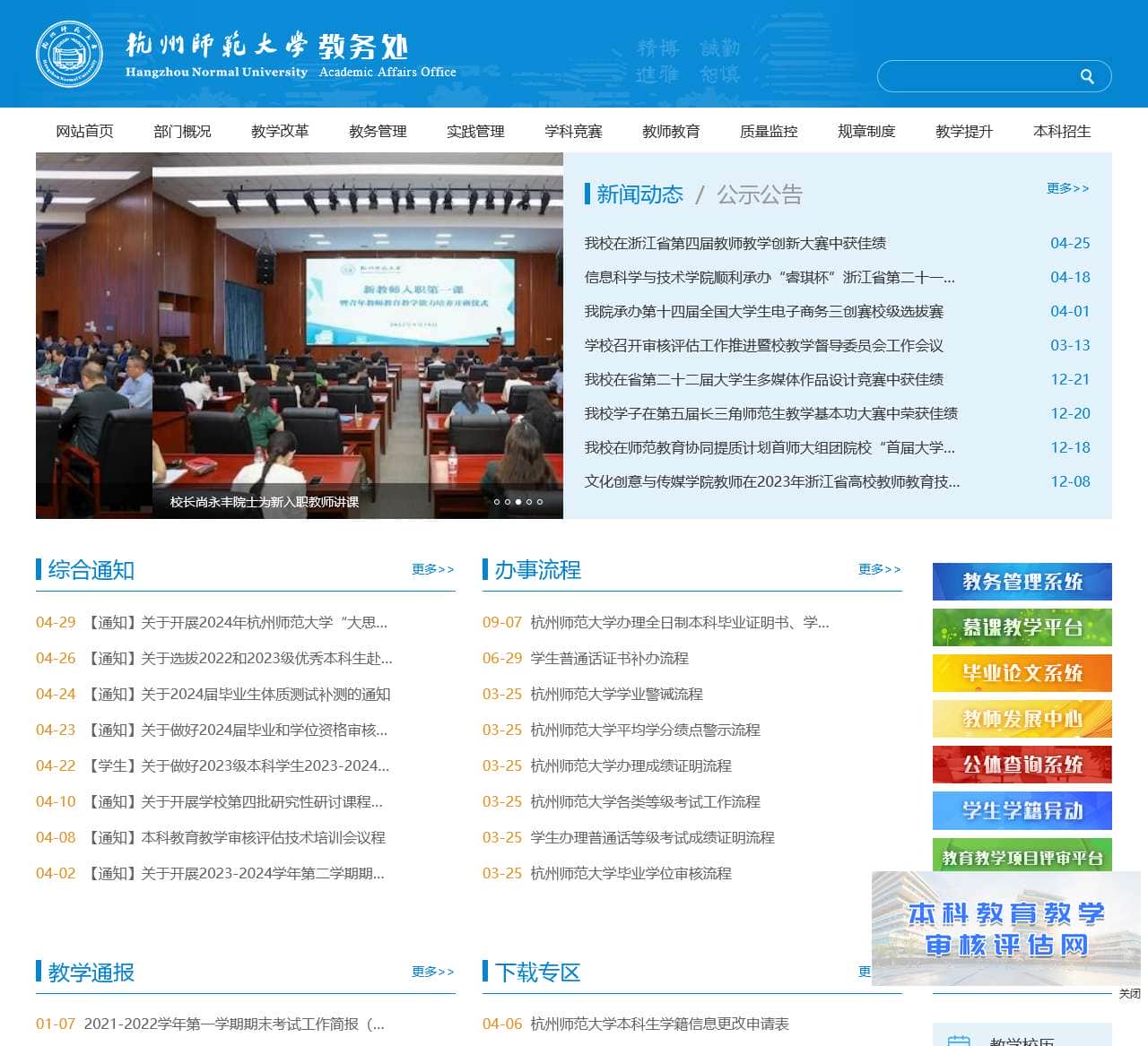| – 关于启动2024年校级教学成果奖申报的通知 | – 杭州师范大学2024年本科教务管理系统项目信息公示 |
