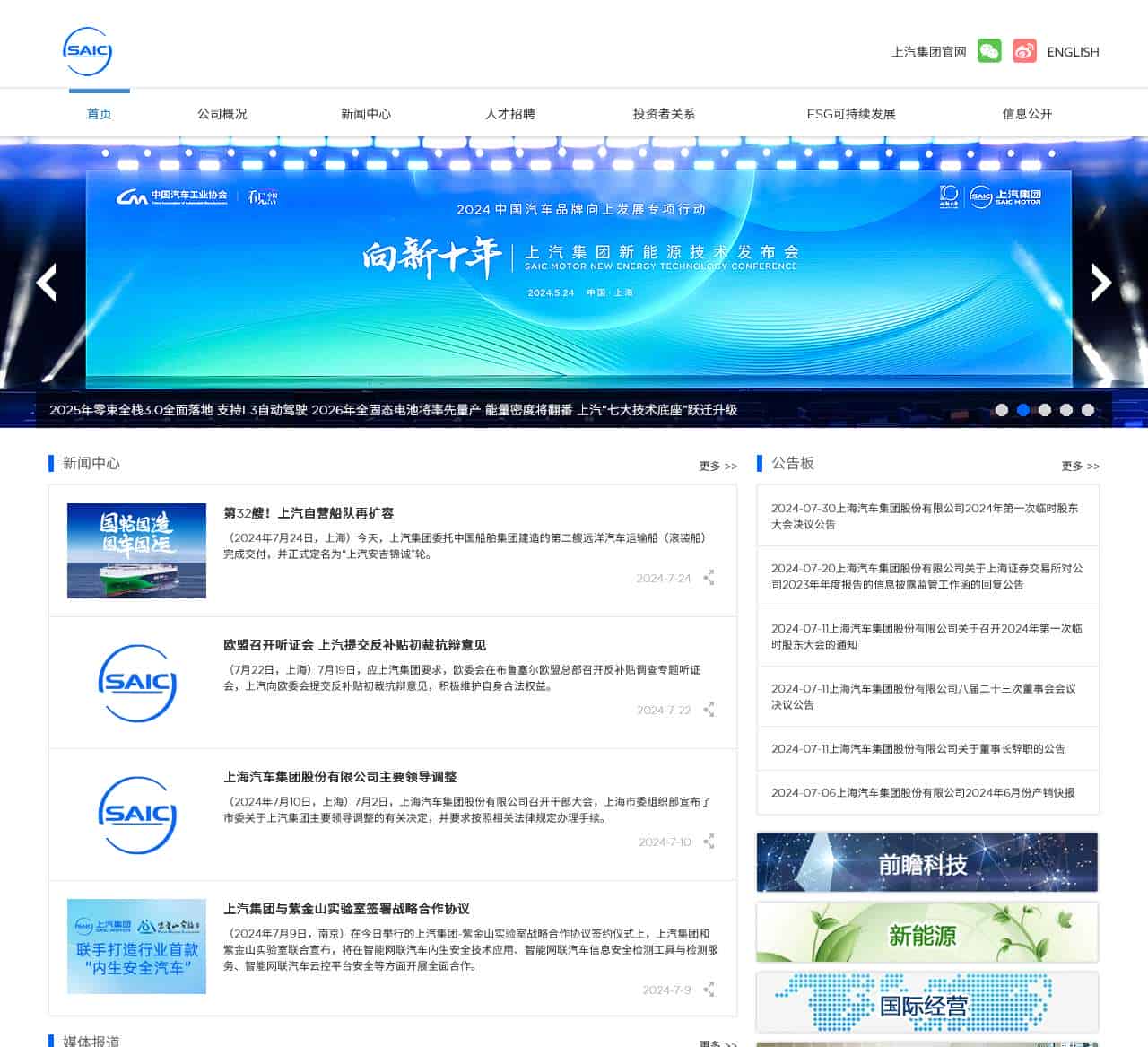 | 上海汽车集团股份有限公司主要领导调整 | (2024年7月10日,上海)7月2日,上海汽车集团股份有限公司召开干部大会,上海市委组织部宣布了市委关于上汽集团主要领导调整的有关决定,并要求按照相关法律规定办理手续。 |