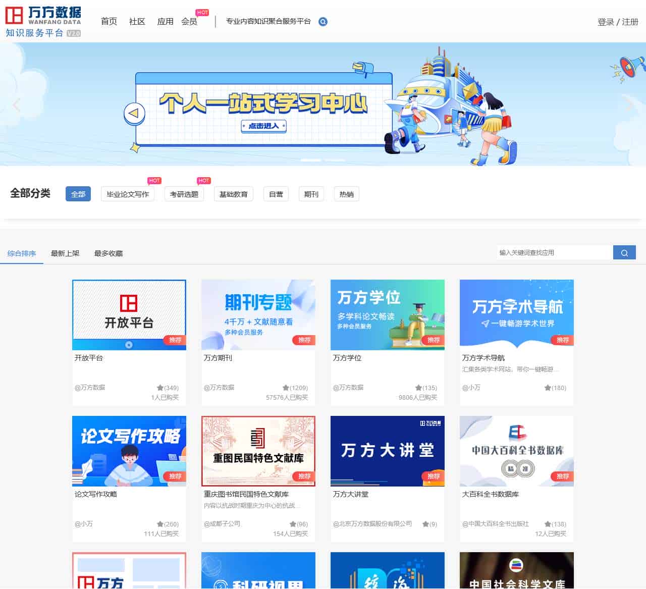 | 万方数据知识服务平台 | 社区 | 应用市场 | 我的应用 | 会员HOT | 首页 | 社区 |