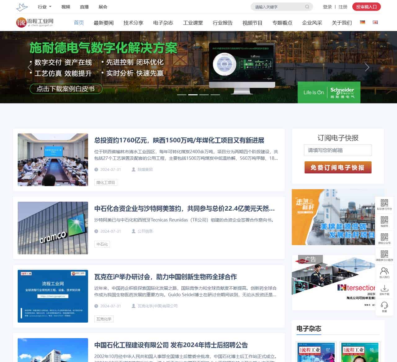 markdown| 行业 | 新闻标题 | 公司名称 | |--------|----------------------------------------------------------------------------------------------|------------------| | 煤化工项目 | 总投资约1760亿元,陕西1500万吨/年煤化工项目又有新进展 | | | 天然气压缩厂开发项目 | 中石化合资企业与沙特阿美签约,共同参与总价22.4亿美元天然气压缩厂开发项目 | 中石化 | | 创新生物药合作 | 瓦克在沪举办研讨会,助力中国创新生物药全球合作 | 瓦克化学 | | 博士后招聘公告 | 中国石化工程建设有限公司发布2024年博士后招聘公告 | 中国石化 | | 巴斯夫财报 | 巴斯夫净利润、销售额“双下降”!全球最大化工企业经历了什么? | 巴斯夫 | | 液化空气新投资 | 液化空气宣布新投资,为奥鲁比斯集团在保加利亚和德国提供气体产品 | 液化空气 | | 聚碳酸酯装置项目 | 聚碳酸酯产能约350万吨!福建古雷装置项目开工,PC市场现状及预测 | | | 智能天然气净化厂 | 中国石油首个智能天然气净化厂试点建设成功 | 中国石油 | | 海外项目招聘 | 【社招】荣盛石化派驻海外沙特项目急招! | 荣盛石化 | | PA66项目进展 | 隆华新材108万吨/年PA66项目(一期)环评重新报批公示缘由分析 | 隆华新材 | | 二季度业绩公布 | 巴斯夫、赢创、陶氏、伊士曼、LG化学、3M、道达尔能源第二季度业绩公布 | | | 巴斯夫二季度报告 | 巴斯夫集团2024年二季度:不计特殊项目的息税、折旧及摊销前收益与上年同期持平 | 巴斯夫集团 | | 耐柯森北京工厂启用 | 质启新程丨耐柯森北京怀柔工厂启用庆典圆满举行 | 耐柯森 | | ABB资产管理领域领先者 | ABB被研究分析公司Verdantix认定为资产绩效管理领域的领先者 | ABB | | 全球化工企业50强 | 中石化、中石油、台塑、中化、荣盛、万华、恒力、盛虹、桐昆、恒逸、新凤鸣上榜2024年全球化工企业50强 | | | 在线技术讨论 | 直播|8月8日在线探讨化工行业水质和气体在线监测技术,欢迎预约! | | | 液化空气非洲业务出售 | 液化空气集团完成出售非洲业务 | 液化空气 | | 万华化学新项目 | 万华化学将在福建新建160万吨/年特种聚烯烃项目 | 万华化学 | | 麦克传感技术创新 | 中国压力传感器先驱麦克传感,以技术创新赢得市场信赖 | 麦克传感 | | 精细化工项目进展 | 总投资837亿元,辽宁盘锦市华锦阿美精细化工及原料工程项目进入设备安装阶段 | |