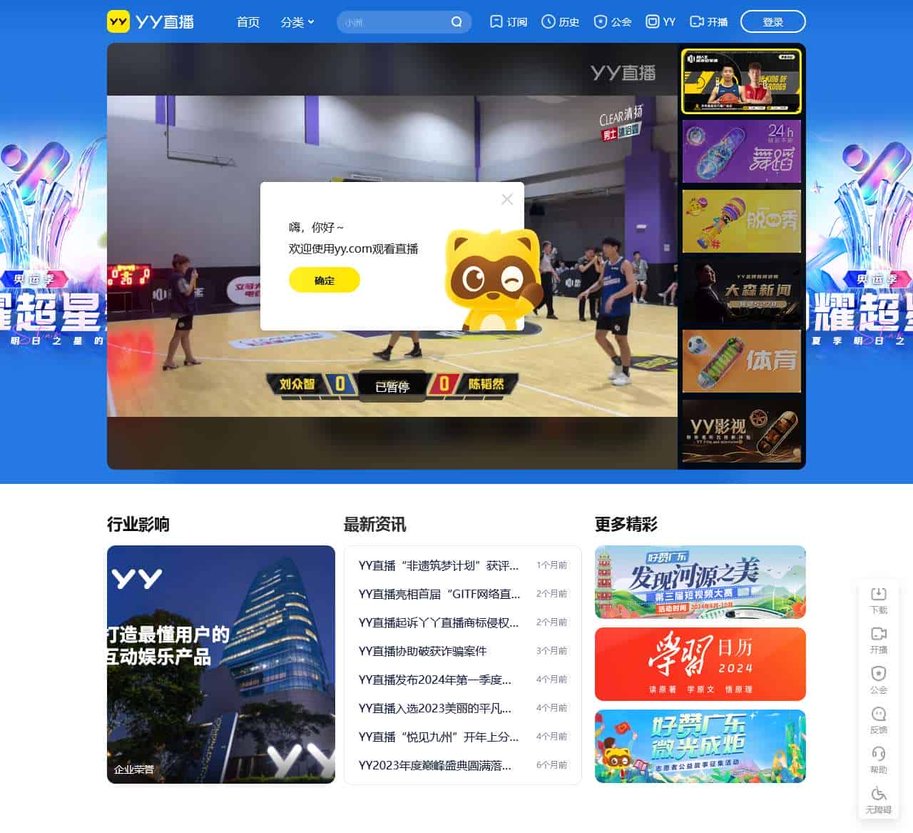 YY致力于打造全民娱乐的互动直播平台,以多样的美女互动、优质的直播内容、极致的互动体验,满足用户音乐、舞蹈、户外等直播及绝地求生、王者荣耀等热门游戏直播的观看需求。